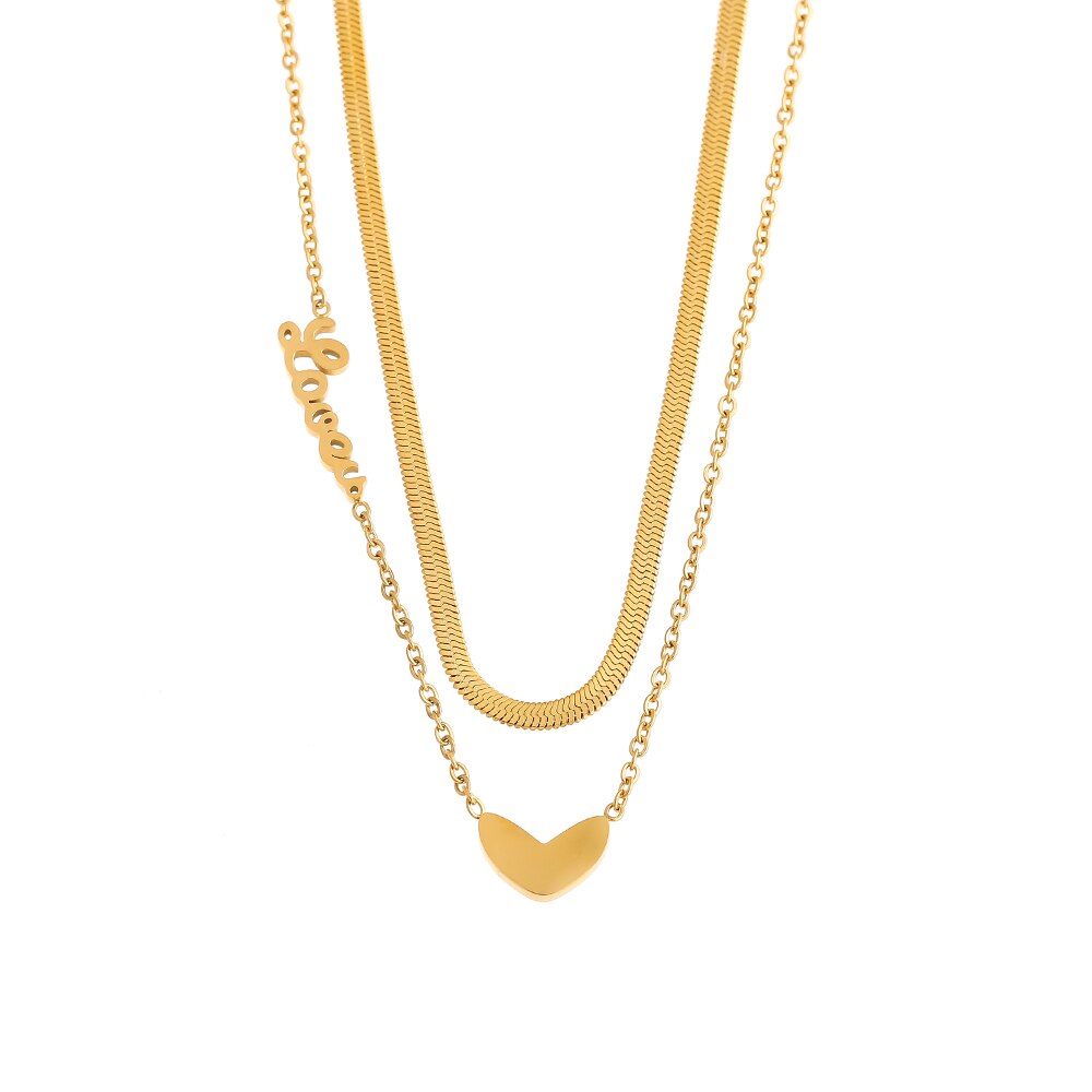 Collar de acero inoxidable de doble capa con forma de corazón, joyería de oro 585, estilo moderno y elegante para mujer.