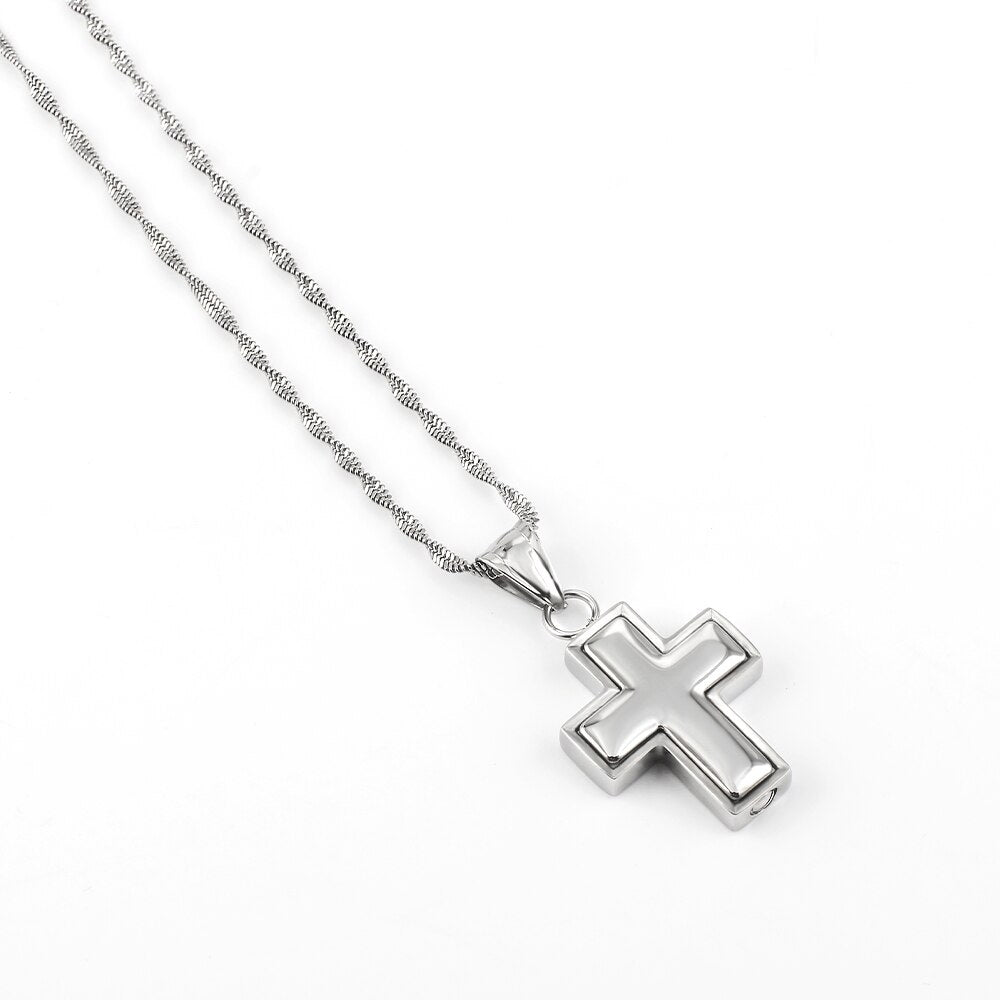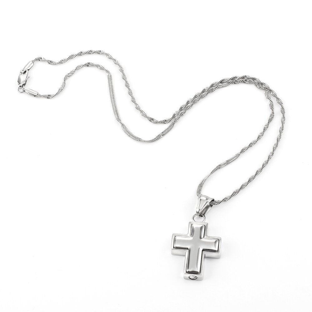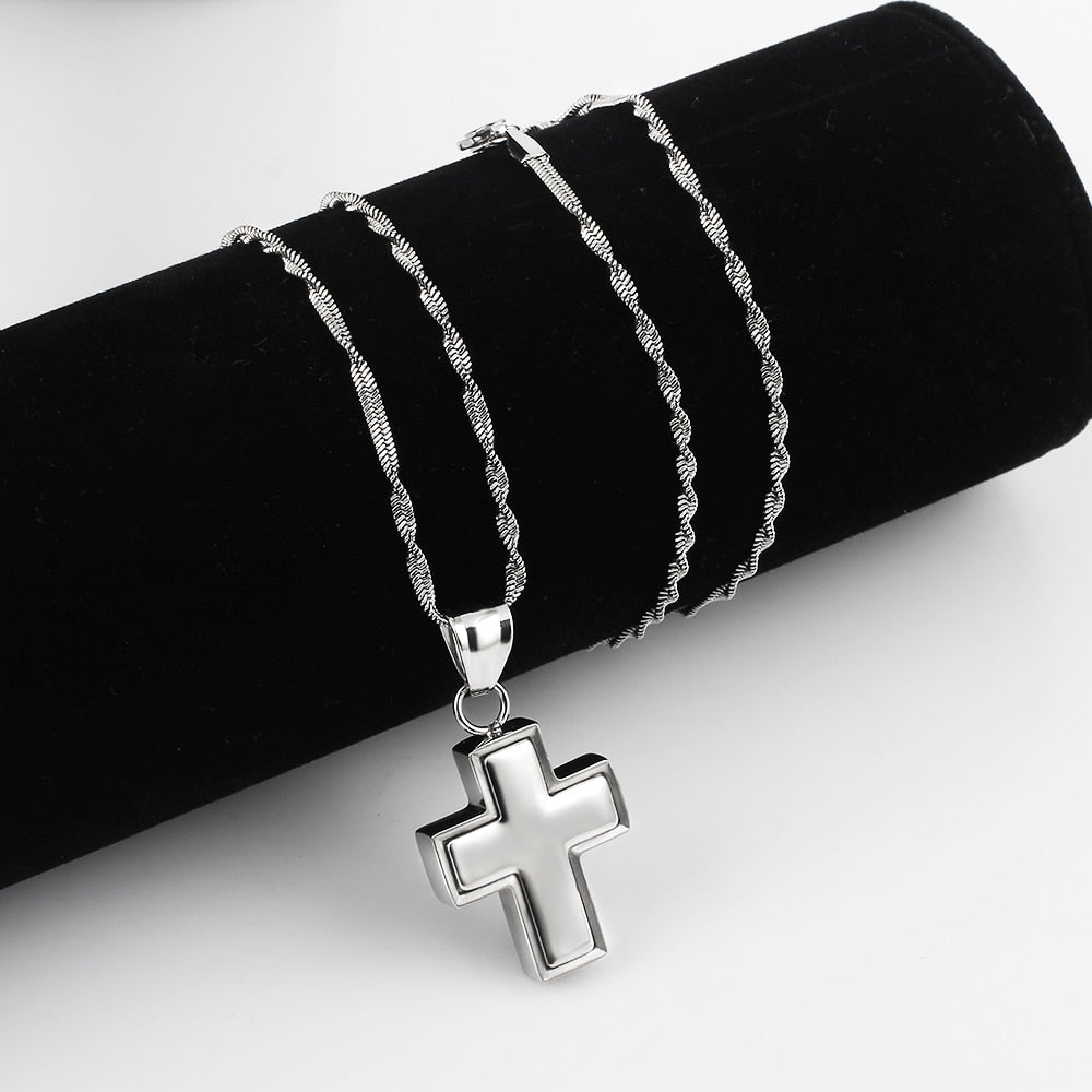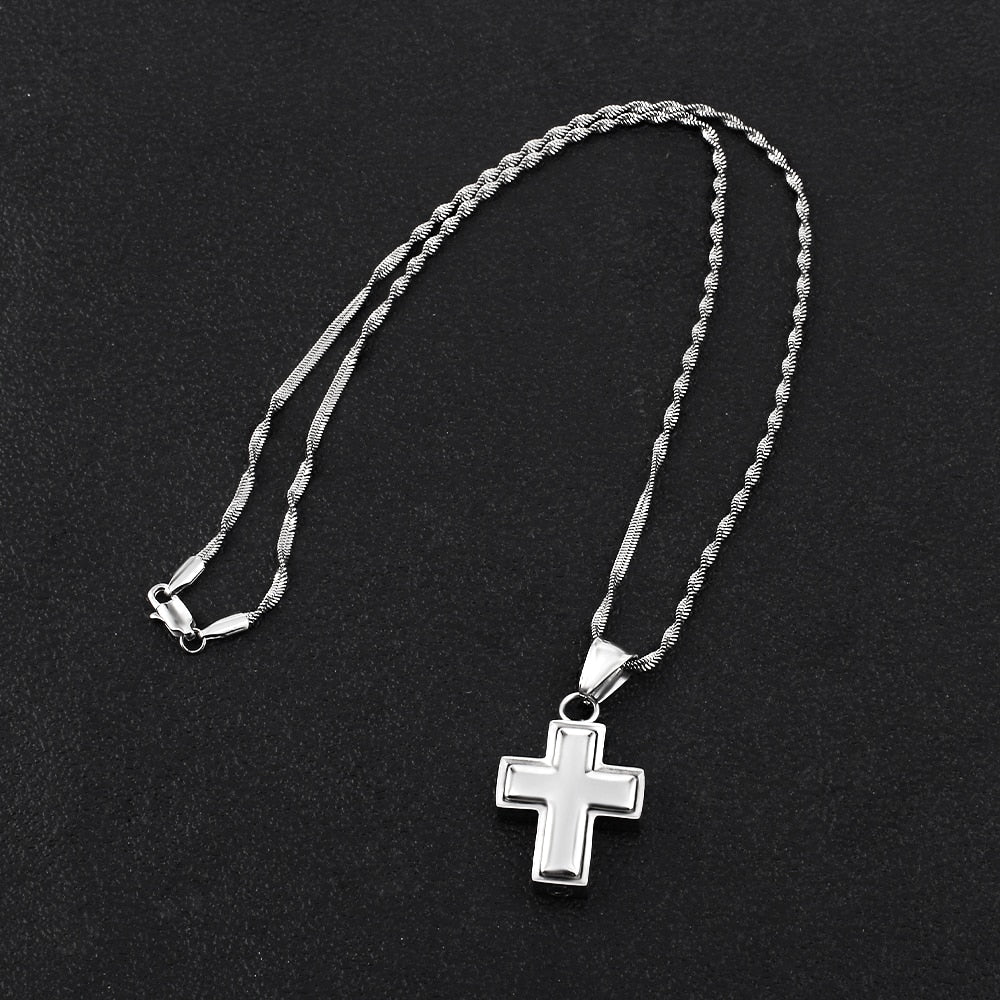 Collar de cadena plana de acero inoxidable con colgante de cruz de color plateado para hombre y mujer.