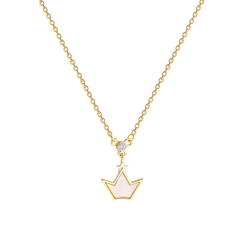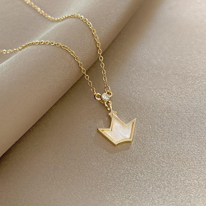 Collar con colgante de circonita y corona de fritilaria de acero inoxidable para mujer, cadena de clavícula con personalidad sencilla y temperamento moderno.