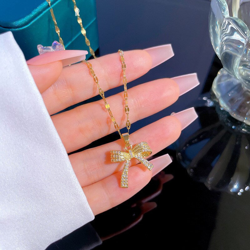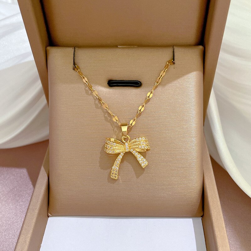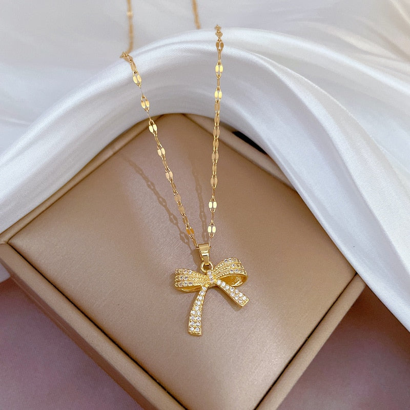 Collar de acero inoxidable 585 con diseño geométrico y lazo para mujer, joyería de moda para fiestas.