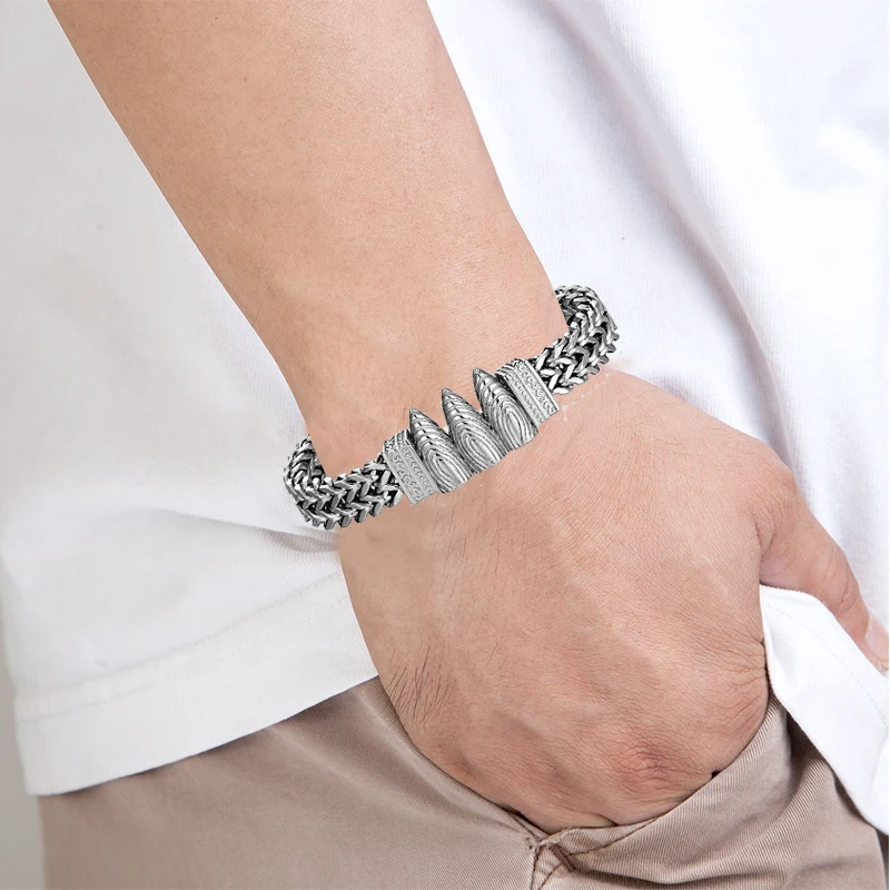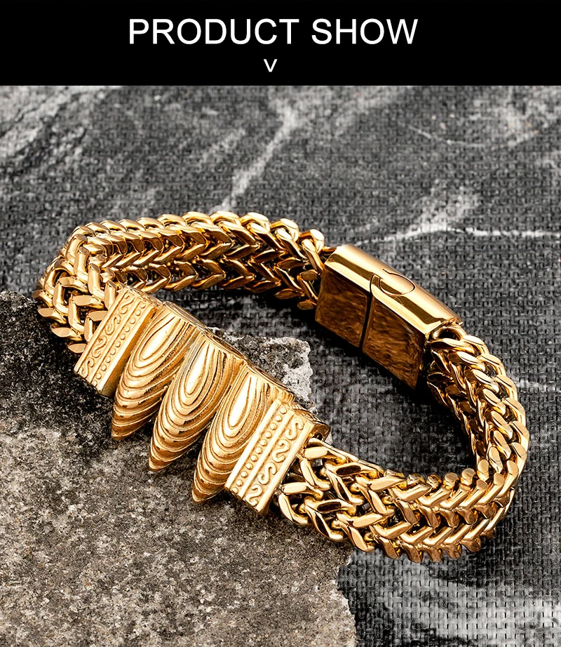 Nombre: Pulsera de eslabones de cadena para hombre Tamaño: 21 cm/23 cm Material: acero inoxidable 316L Consejos: El envío directo y los servicios personalizados están disponibles.