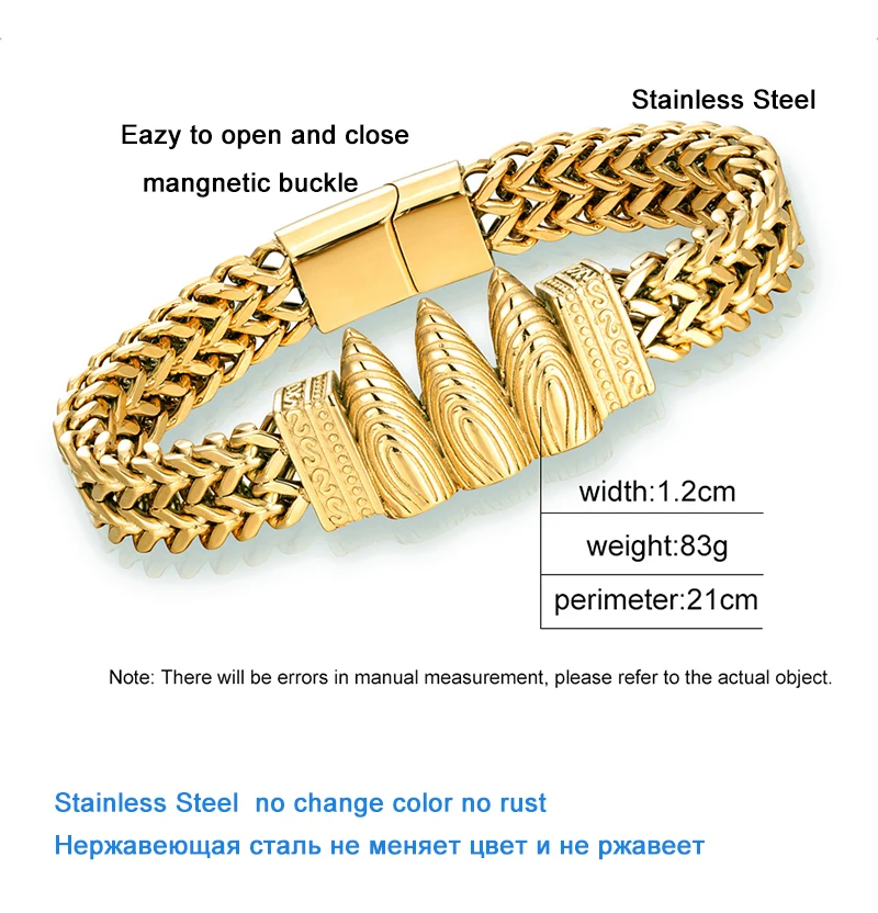 Pulsera de acero inoxidable con cadena dorada para hombre, accesorios punk, cierre magnético, joyería de moda, regalos para amigos.
