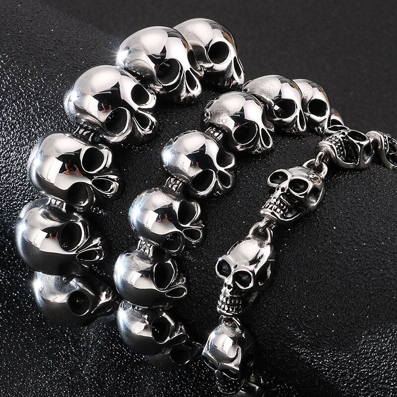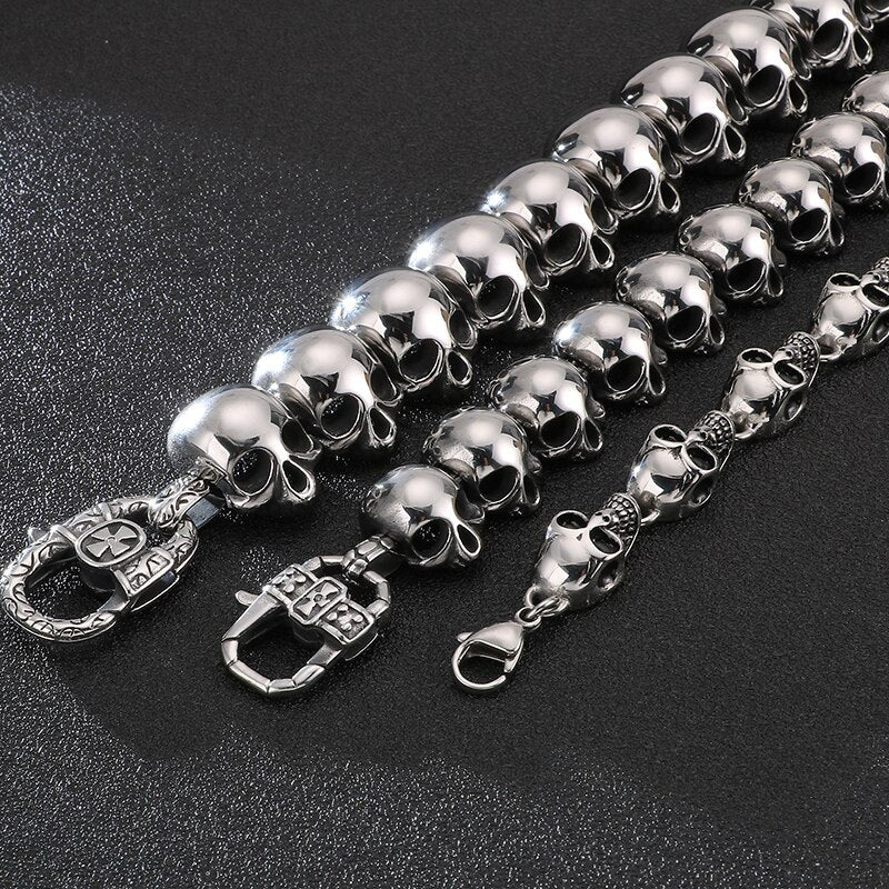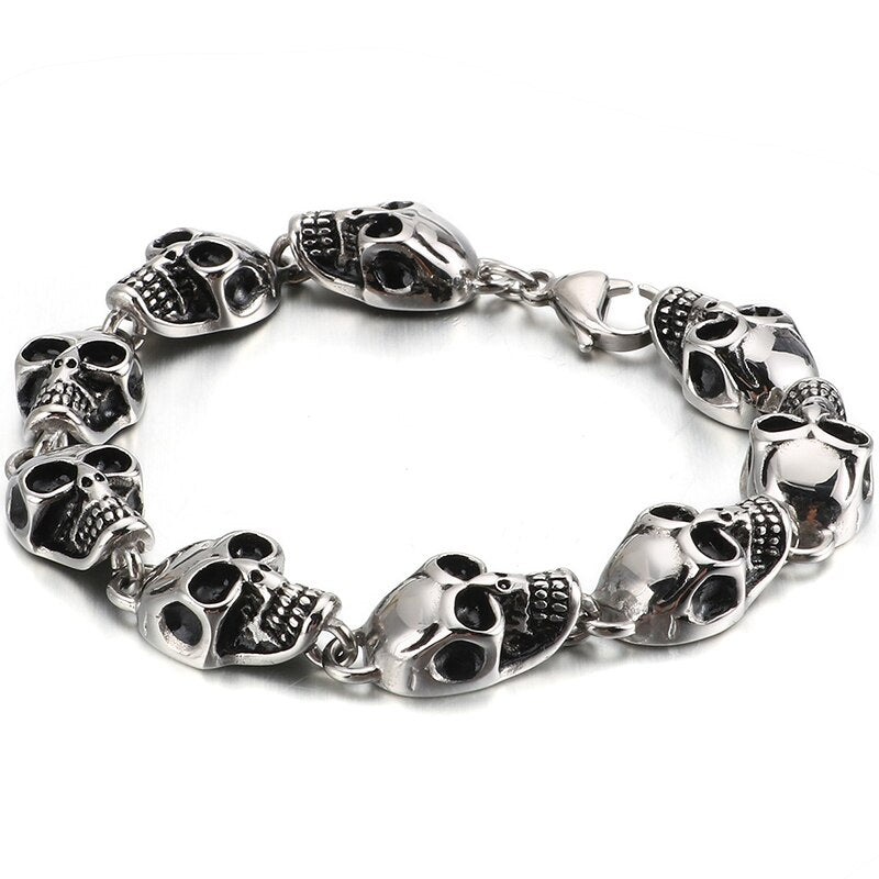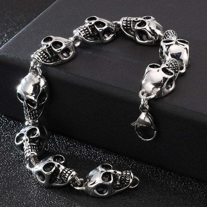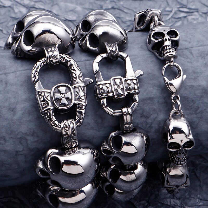 Pulsera de calavera para hombre de acero inoxidable: Pulseras de metal para hombre