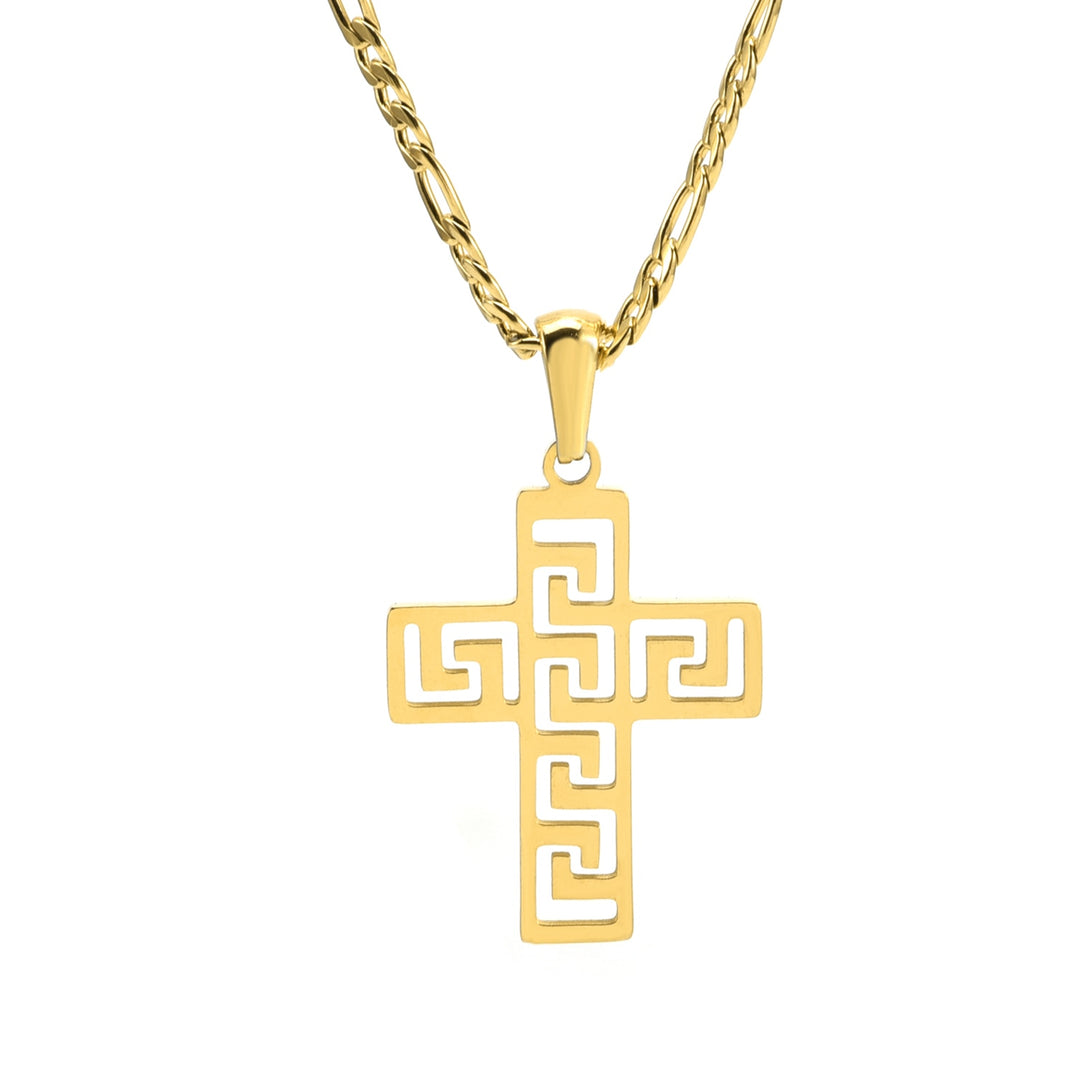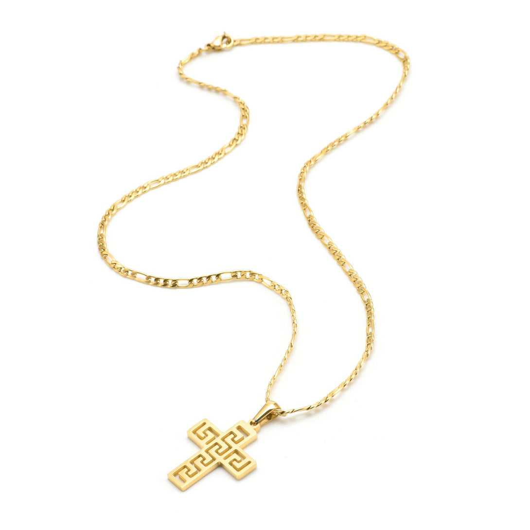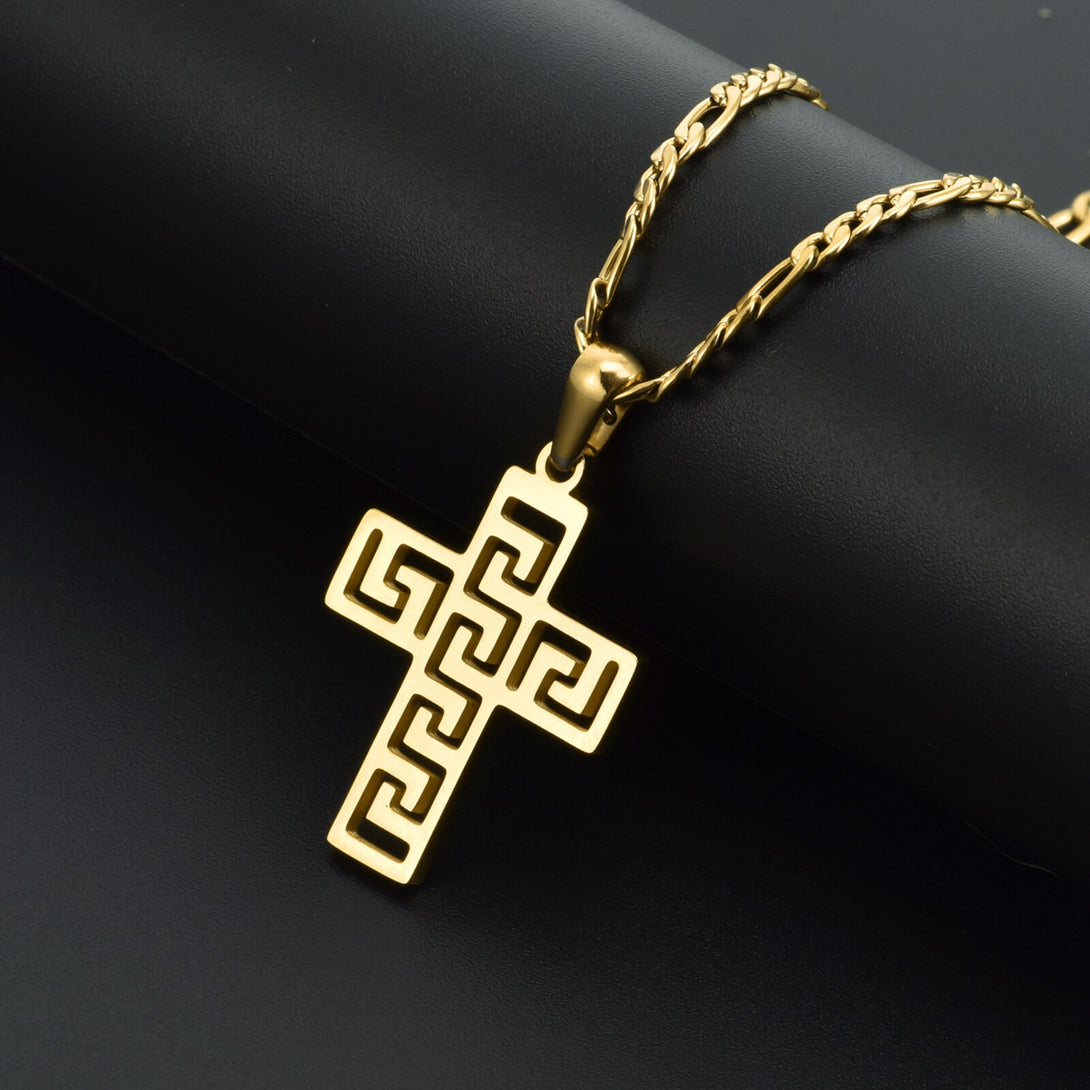 Collar con colgante de cruz hueca de acero inoxidable para hombres y mujeres, gargantilla punk hip hop, cadena Figaro dorada, joyería de moda, regalo