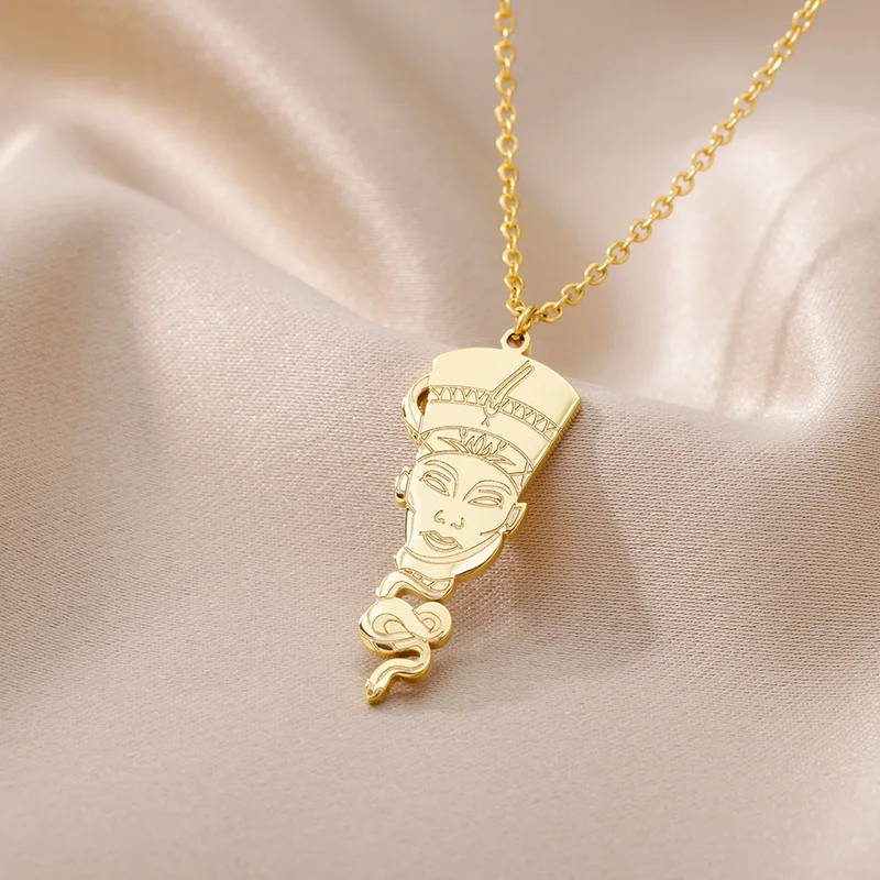 Tamaño del colgante: collar femenino con colgante de faraón egipcio en color dorado y plateado.