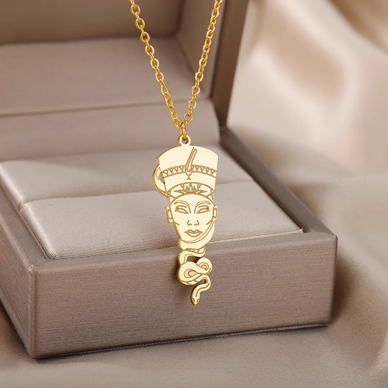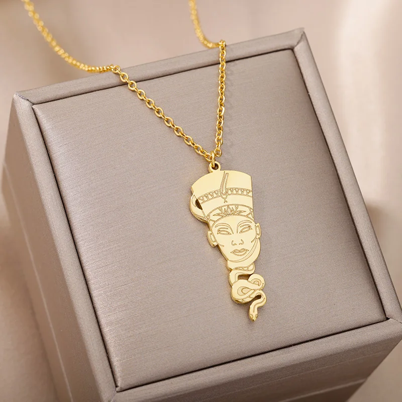Collar de acero inoxidable con cabeza humana de faraón egipcio, joyería de oro 585, para mujer y hombre, color plata, ideal para fiestas.