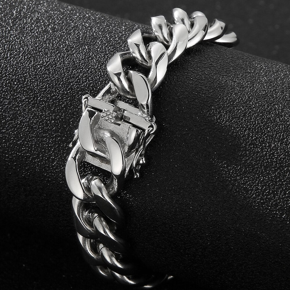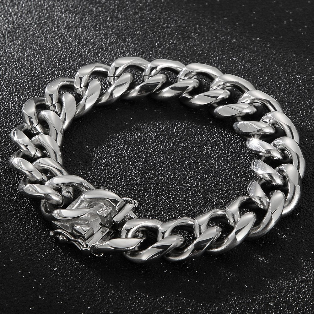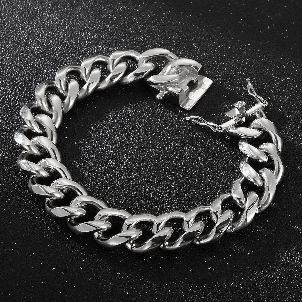 Pulsera de acero inoxidable para hombre, cadena de eslabones de 15 mm de grosor, pulseras de mano para hombre