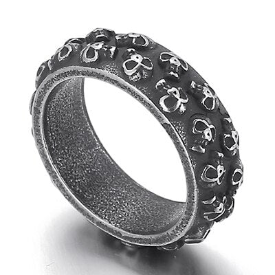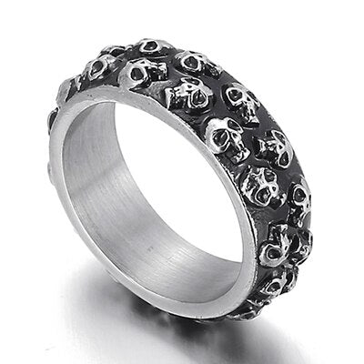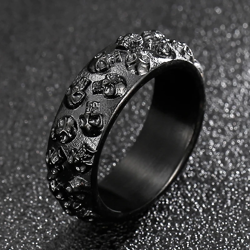 Anillo de acero inoxidable para hombre con calavera grabable, estilo gótico y titanio. Joyas para hombre.