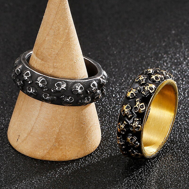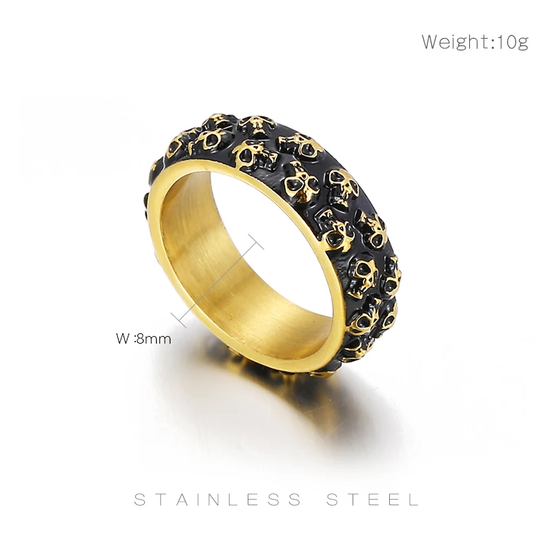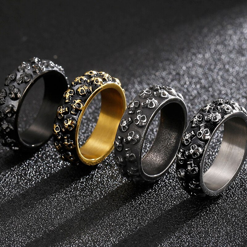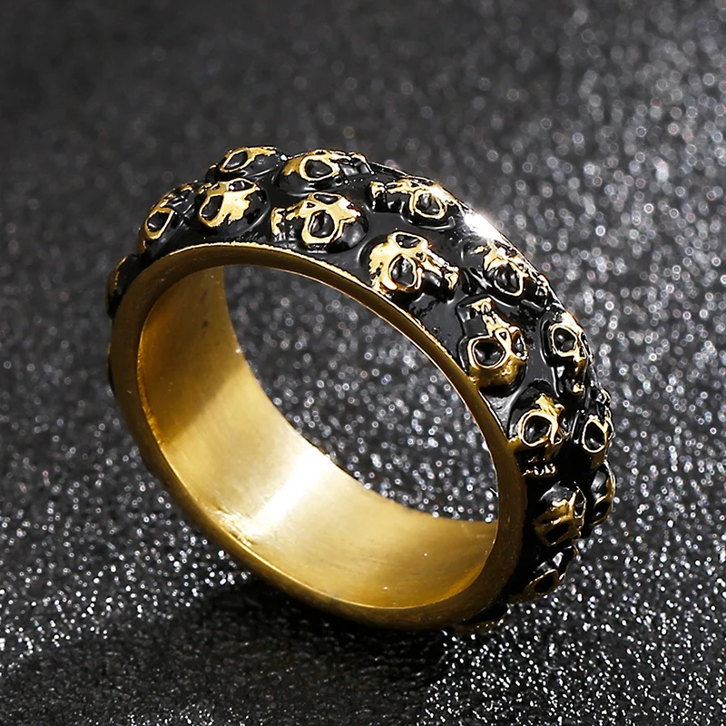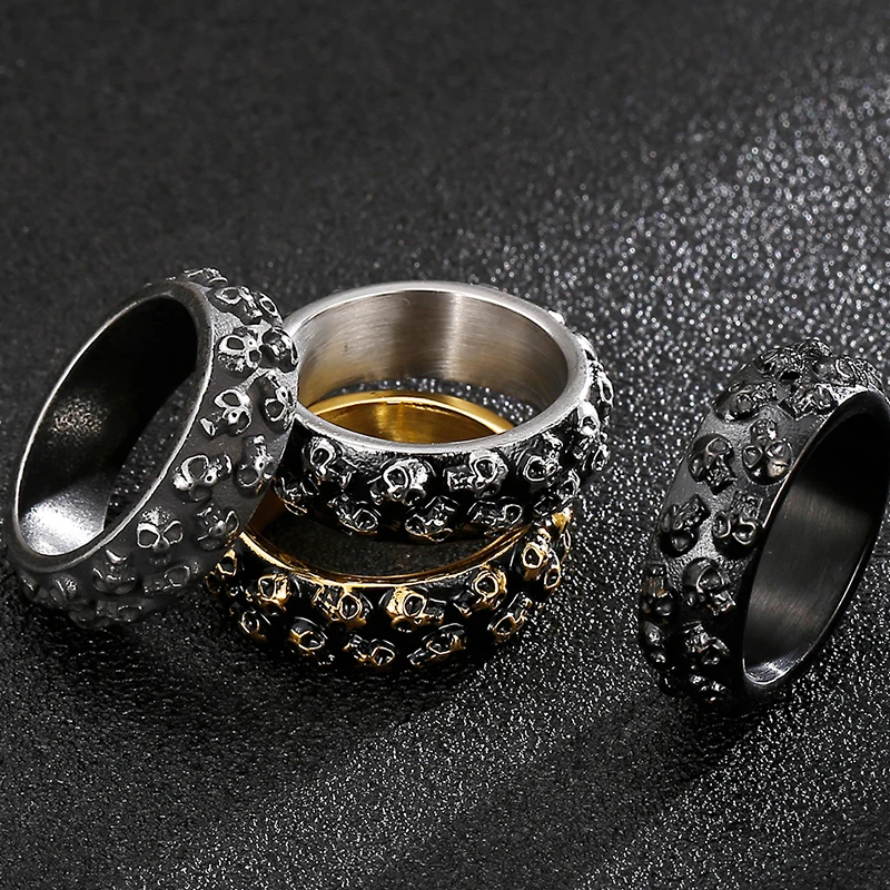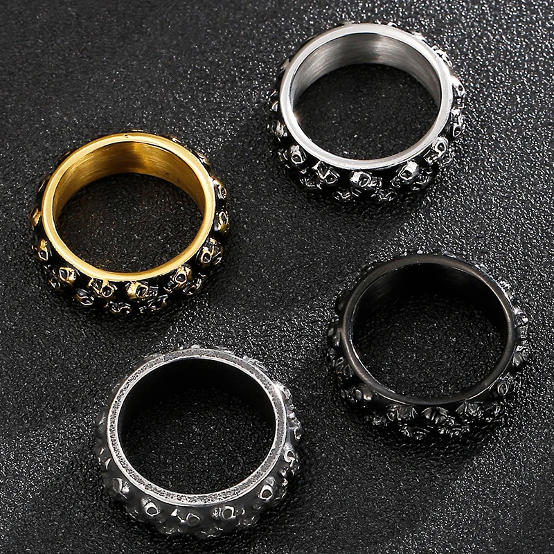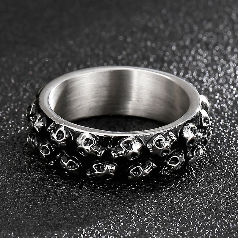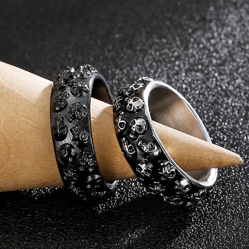 Anillo de acero inoxidable para hombre con calavera grabable, estilo gótico y titanio.