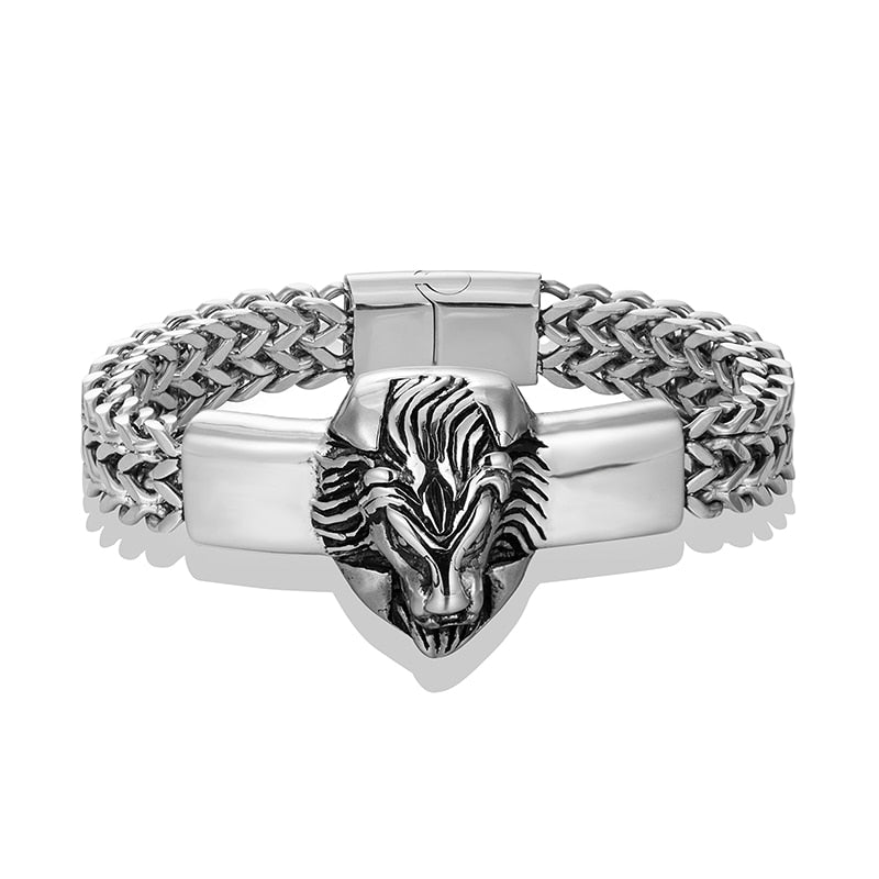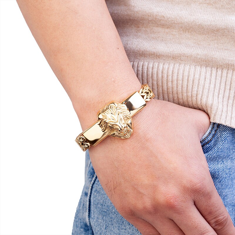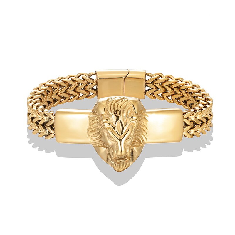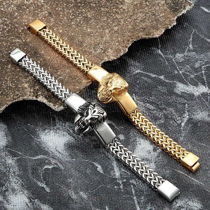 Pulsera de acero inoxidable con cadena de león dorado para hombre, accesorios punk, pulsera magnética de moda, joyería al por mayor para regalo de amigos.