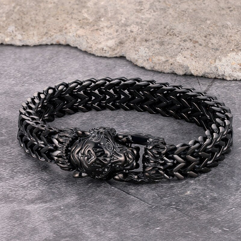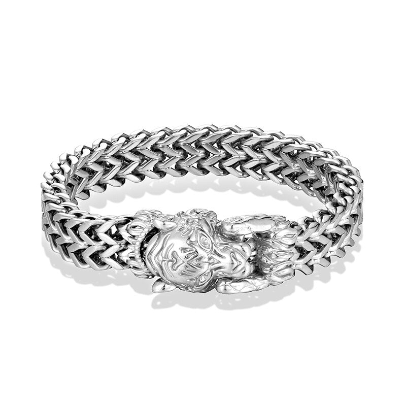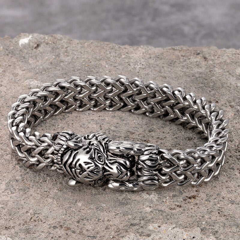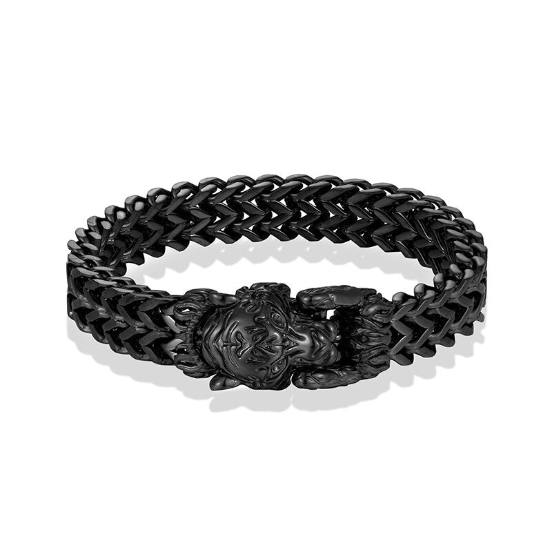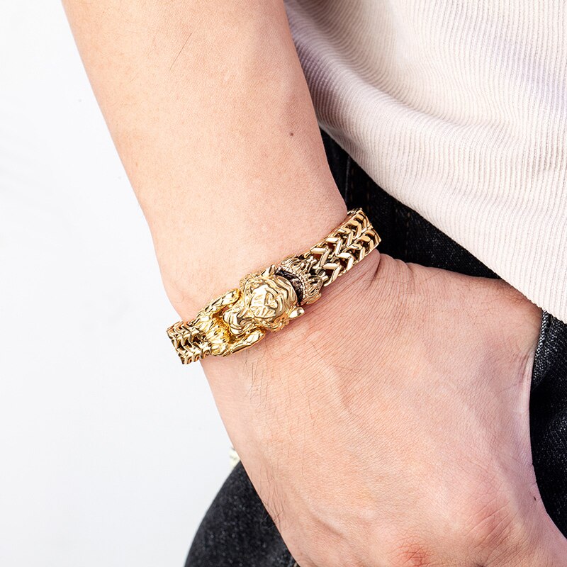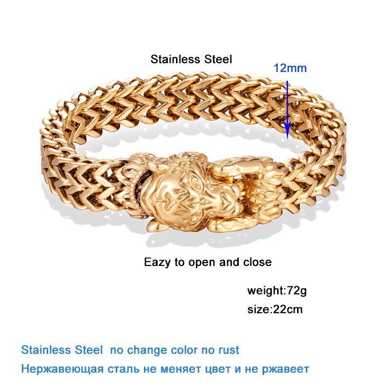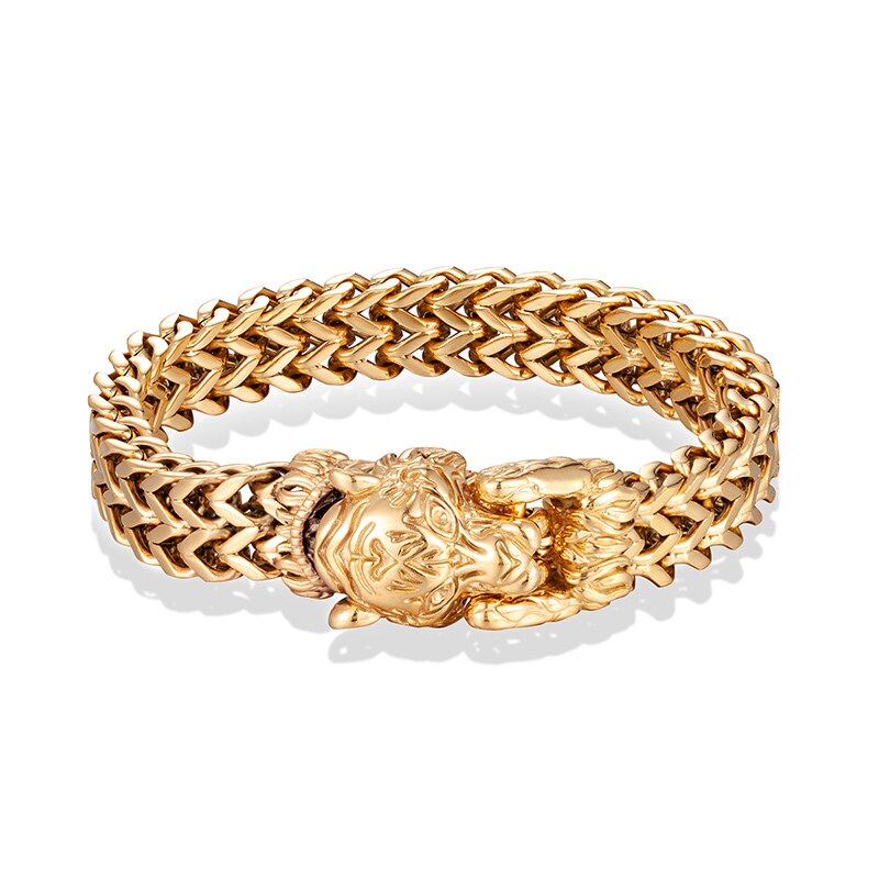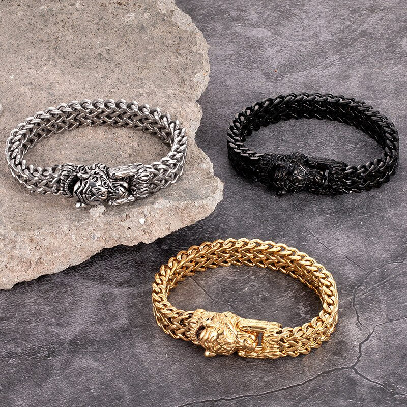 Pulsera de acero inoxidable con eslabones de cadena y cabeza de tigre dorada para hombre