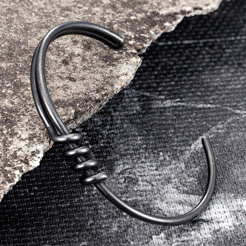 Nombre: Brazalete negro vintage para hombre Material: acero inoxidable Consejos: Envío directo y servicios personalizados disponibles