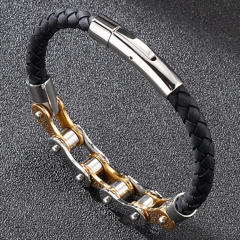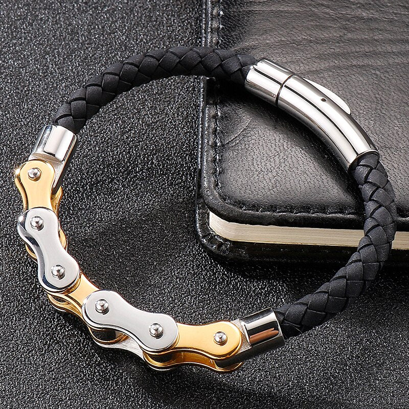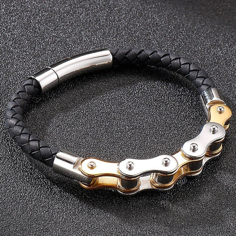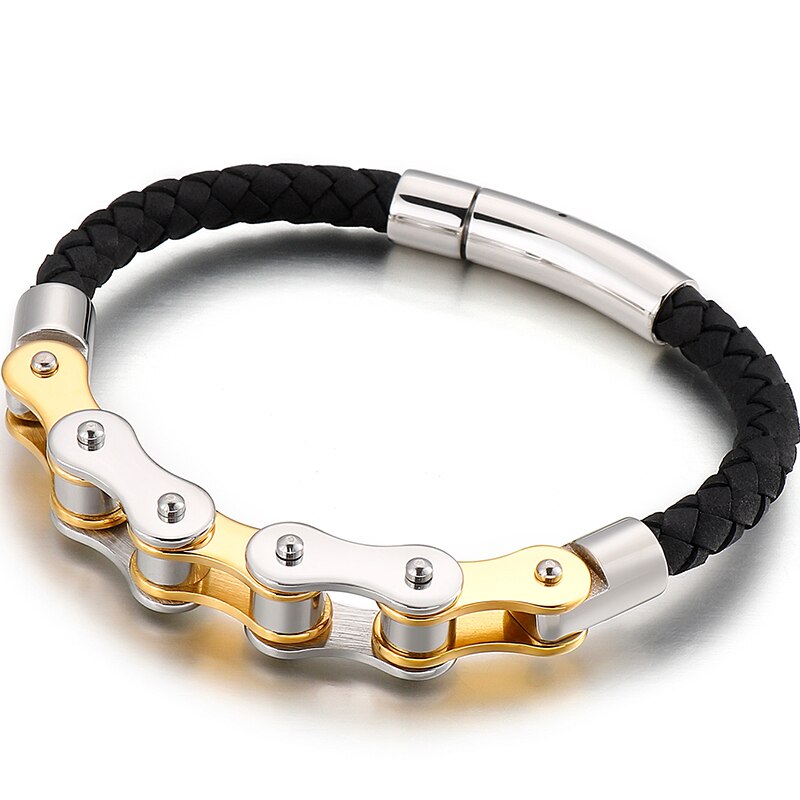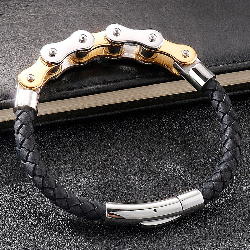 Pulsera de cadena de motociclista de acero inoxidable para hombre, brazalete de cuero trenzado, brazalete con logotipo grabable.