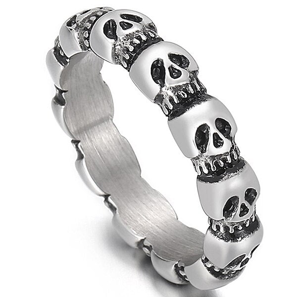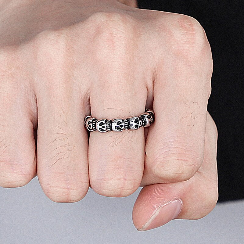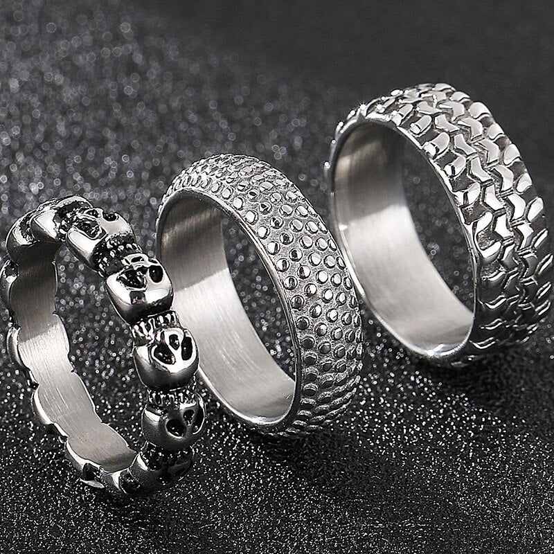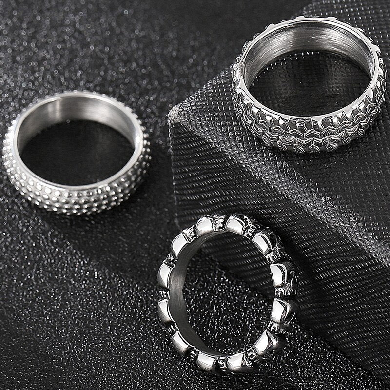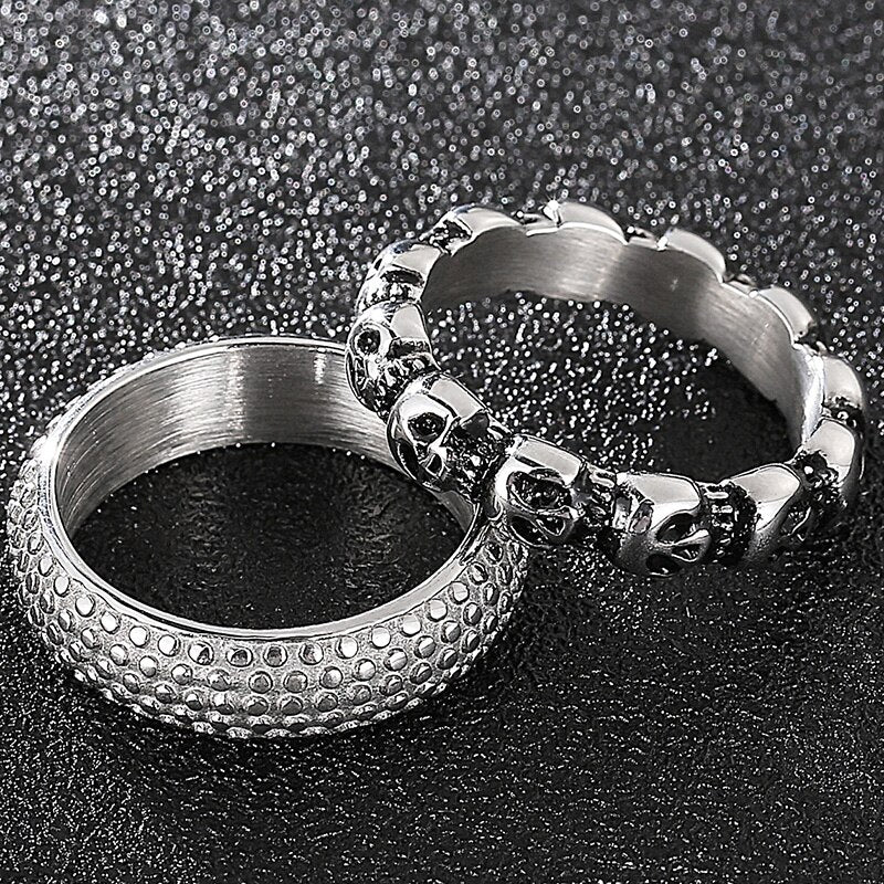 Anillo de acero inoxidable con forma de calavera para hombre, con diseño de rock and roll, grabable, para neumáticos. Joyería para hombre.