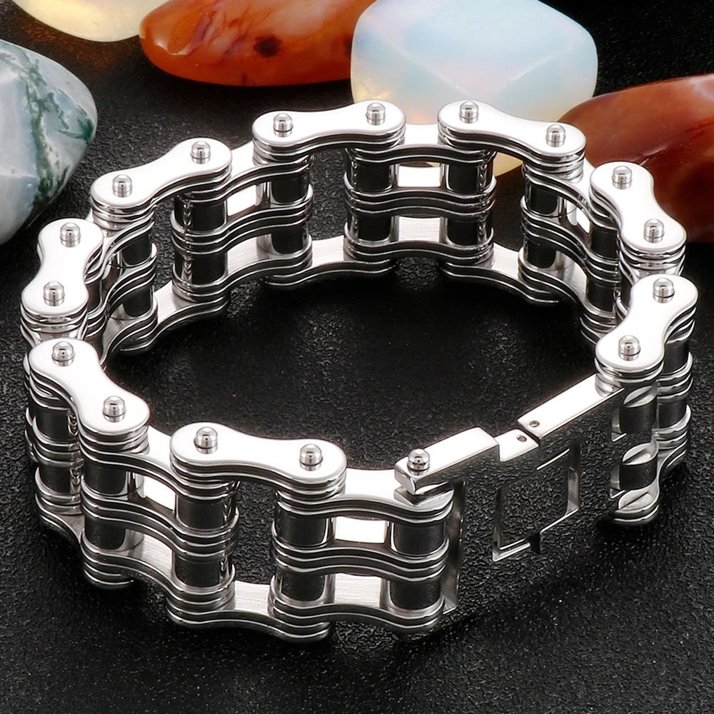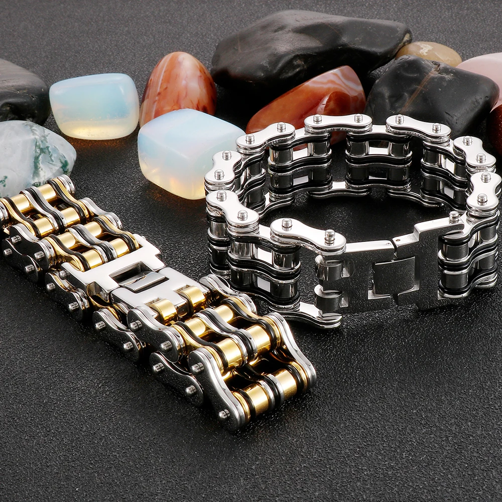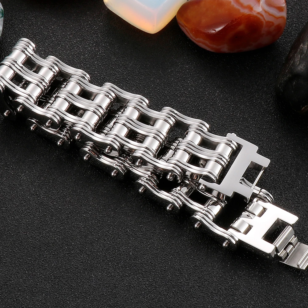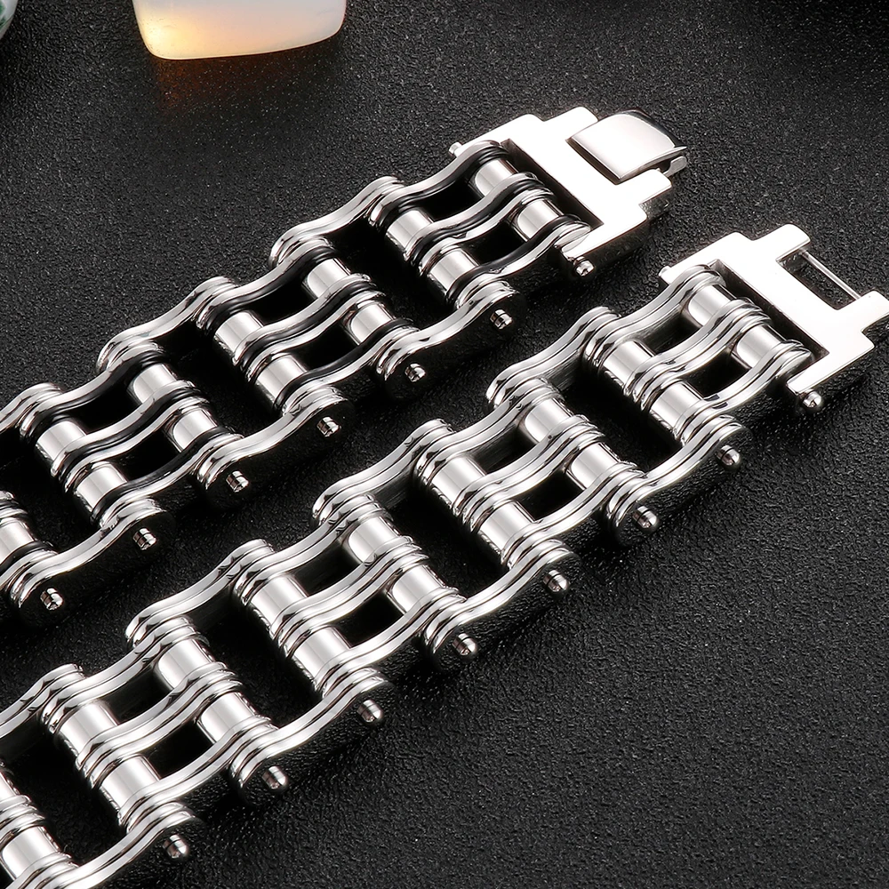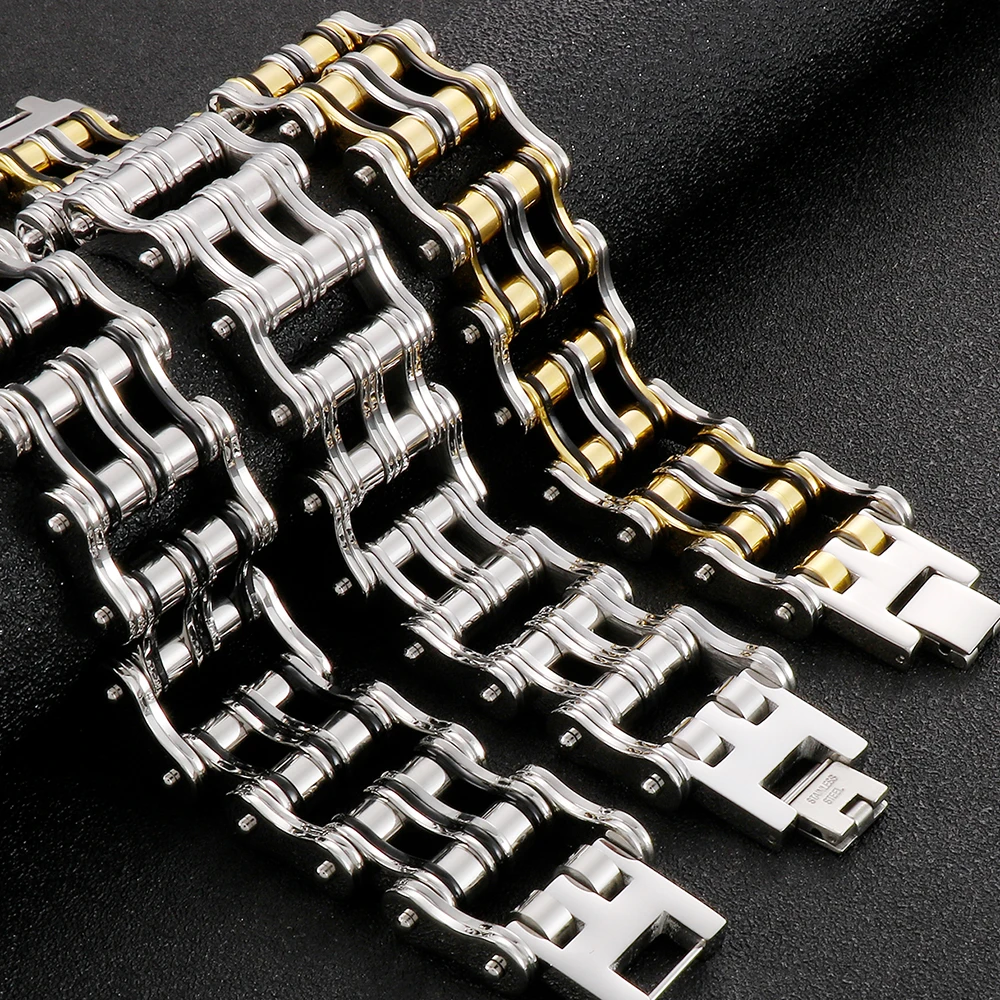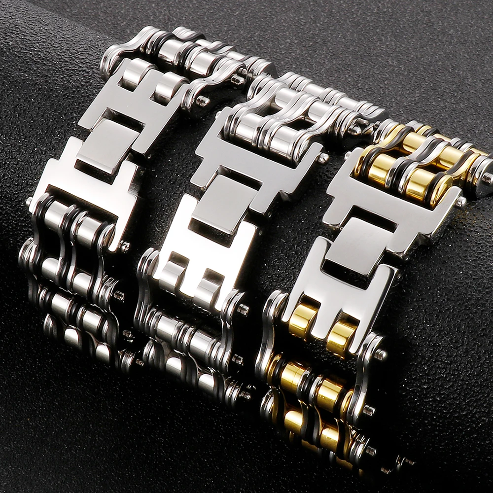 Pulsera de acero inoxidable con cadena de motocicleta para hombre, 24 mm de ancho, accesorios de cadena de mano, brazaletes masculinos, joyería de rock and roll y rap.
