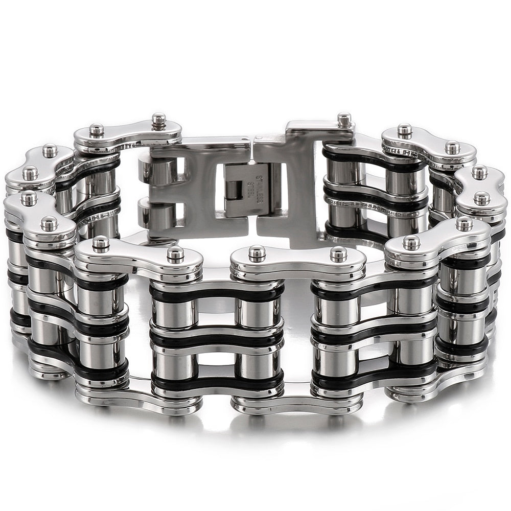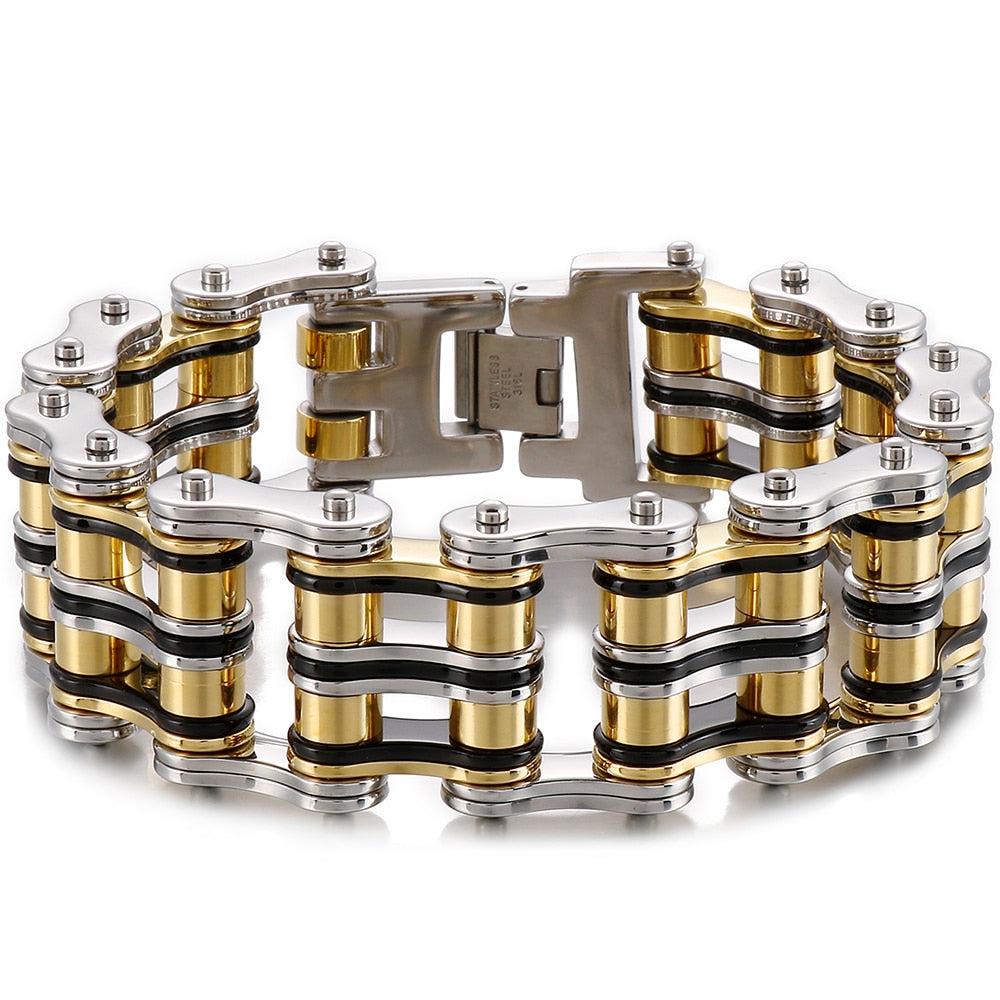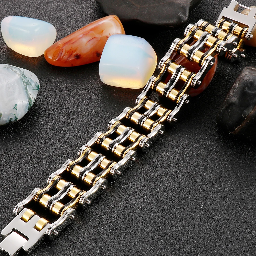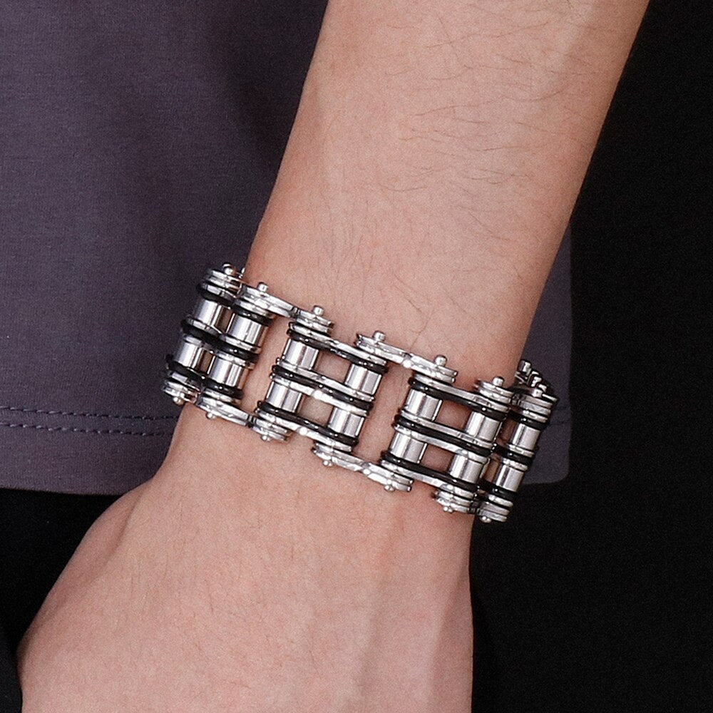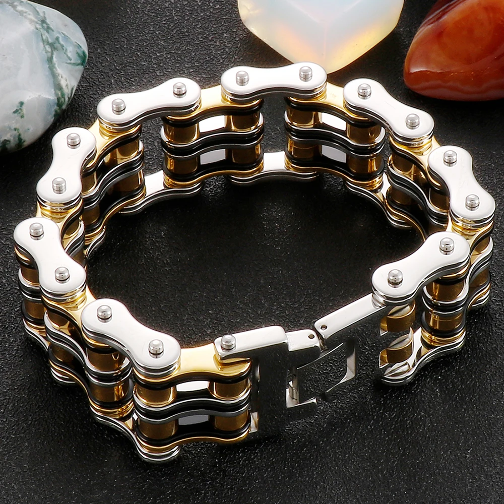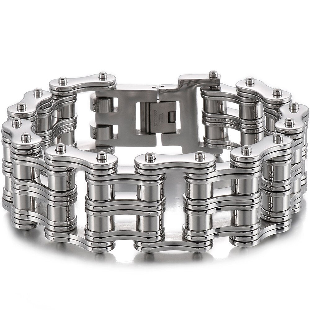 Pulsera de acero inoxidable con cadena de motocicleta para hombre, 24 mm de ancho, accesorios de cadena de mano, brazaletes masculinos, joyería de rock and roll y rap.