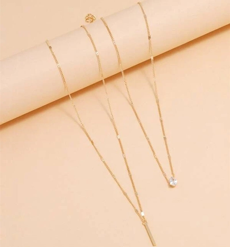 Joyería de oro 585: collar de acero inoxidable multicapa con circonitas AAA y doble gota, cadena de moda, exquisito collar glamoroso para joyería de mujer.