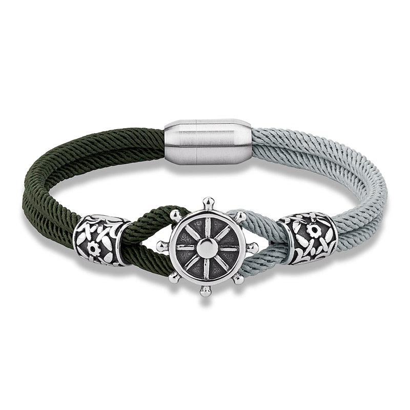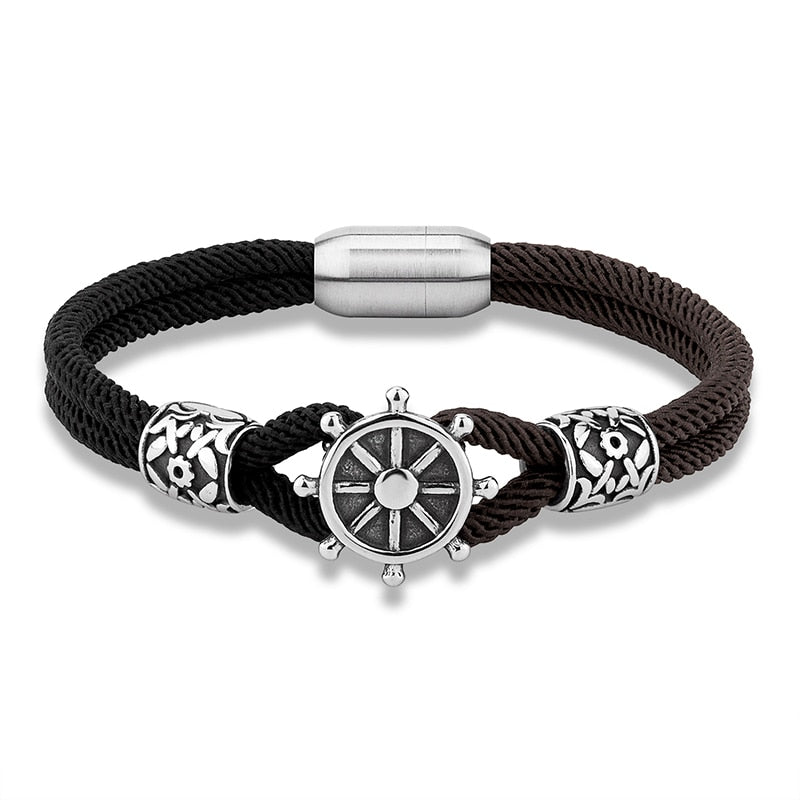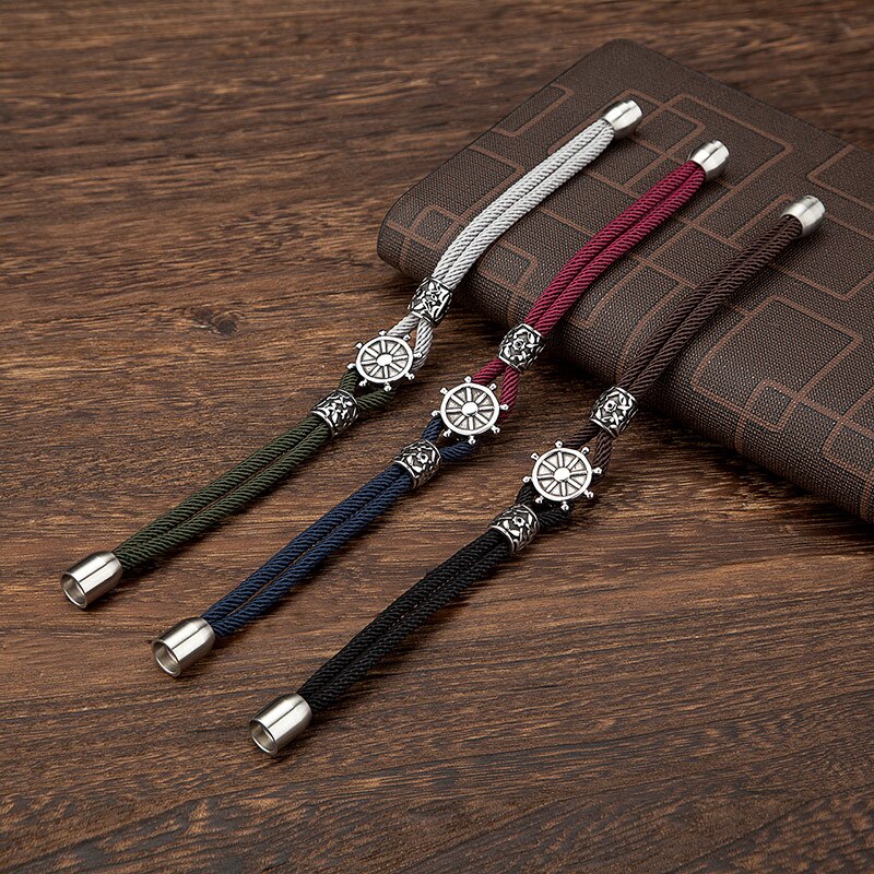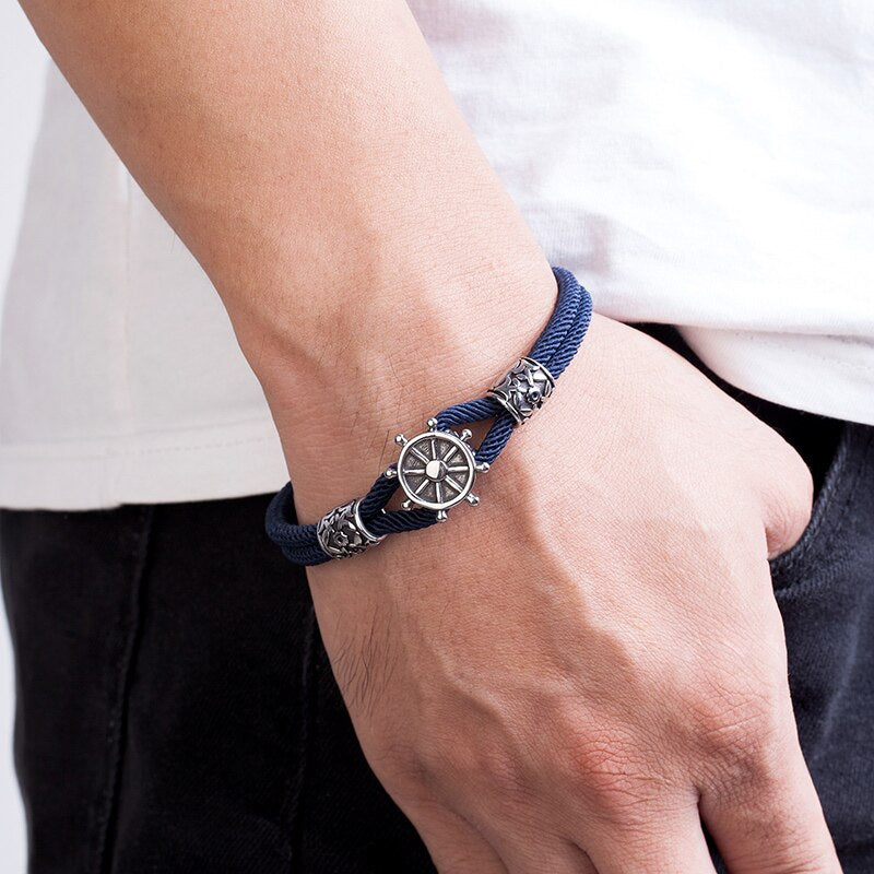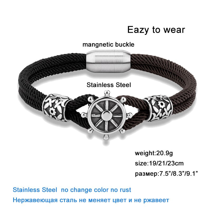 Pulseras de acero inoxidable con ancla y timón de la marina, accesorios de cuerda de moda para hombres y mujeres, dijes hechos a mano, joyería con hebilla magnética