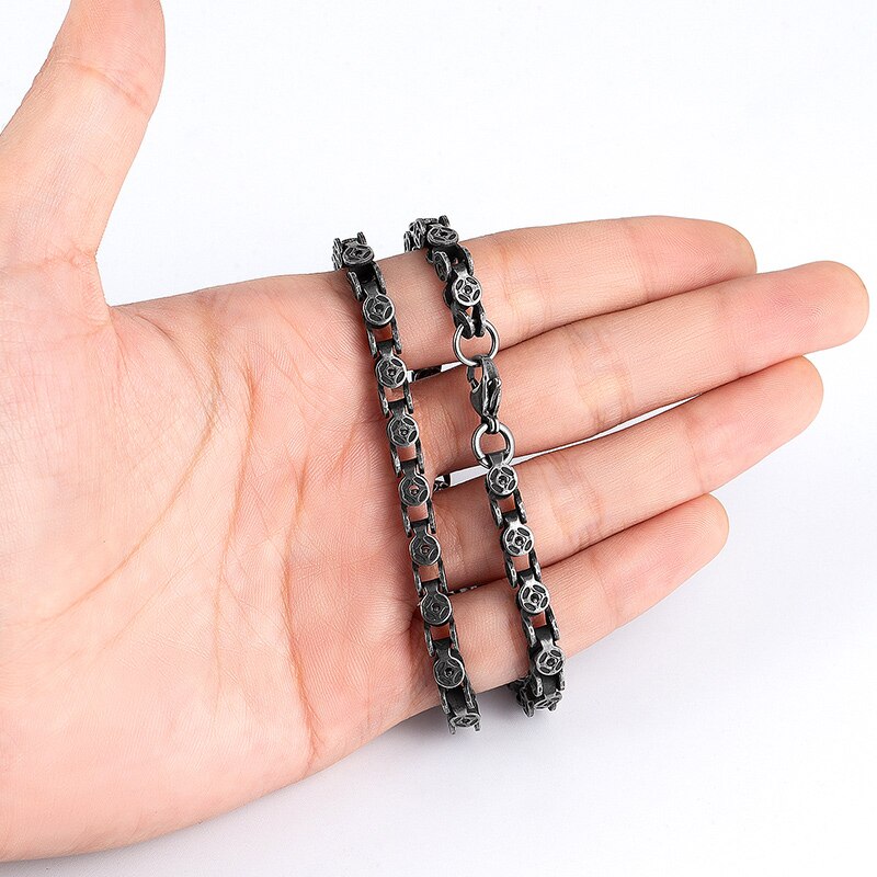 Collar de acero inoxidable de 5 mm, estilo vintage, negro, ancho, cubano, cadena punk, largo, para hombre.