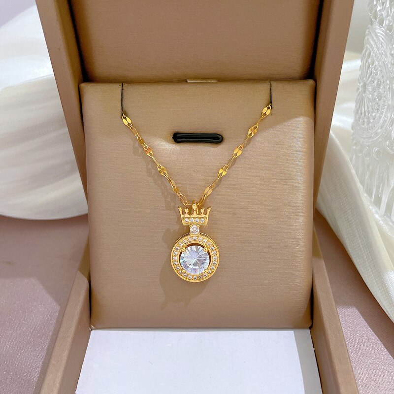 Collar de acero inoxidable 585 con colgante clásico de corona de circonita cúbica, gargantilla, cadena, collar de moda para mujer, joyería de circonita para fiesta.