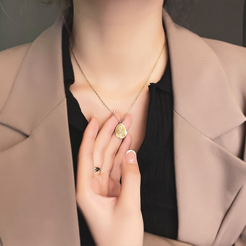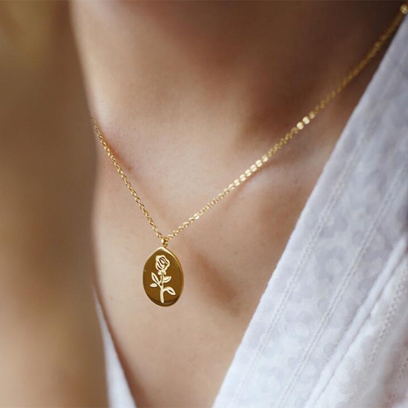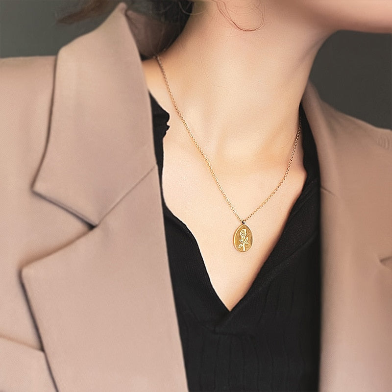 Collares de acero inoxidable con colgantes y gargantillas con tatuajes de rosas para mujer