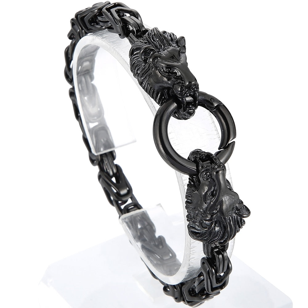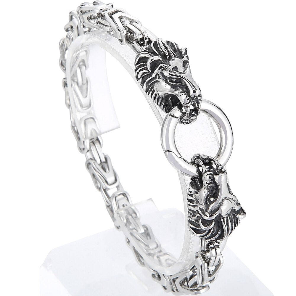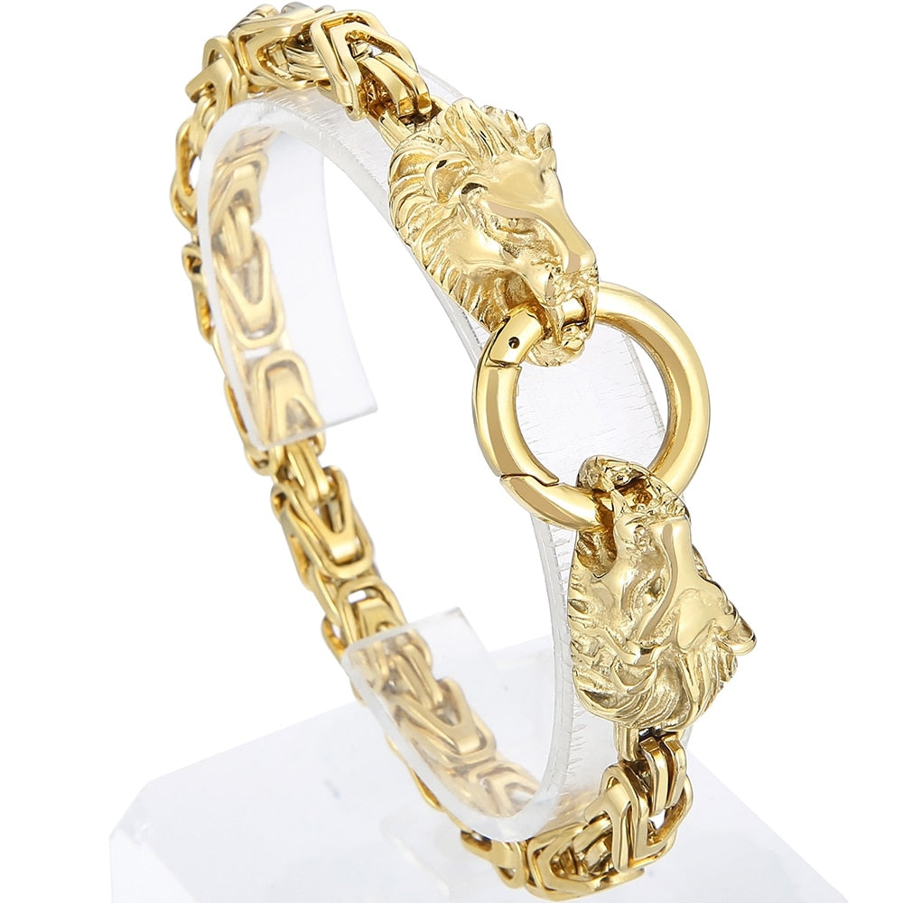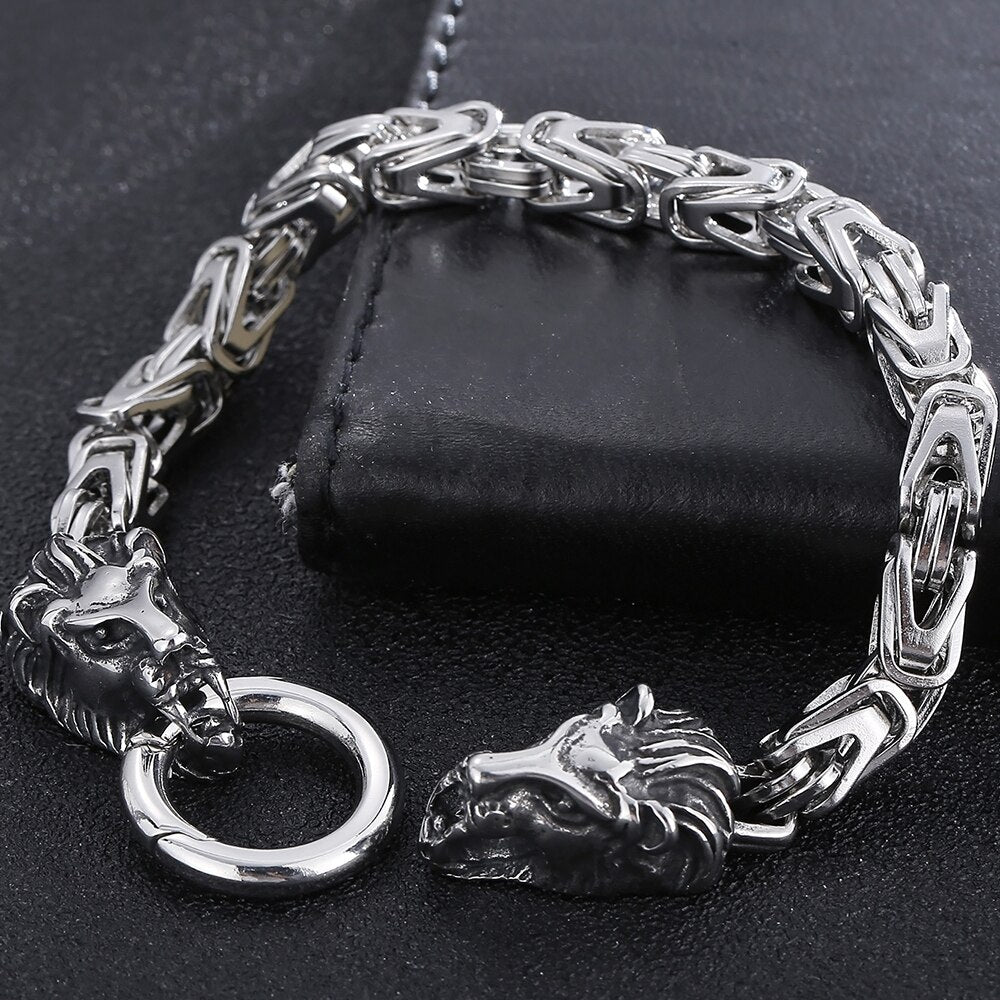 Pulsera de acero inoxidable con cabeza de león para hombre, joyería de fiesta, cadena de eslabones de 6 mm, con cierre de anilla de resorte, estilo punk.