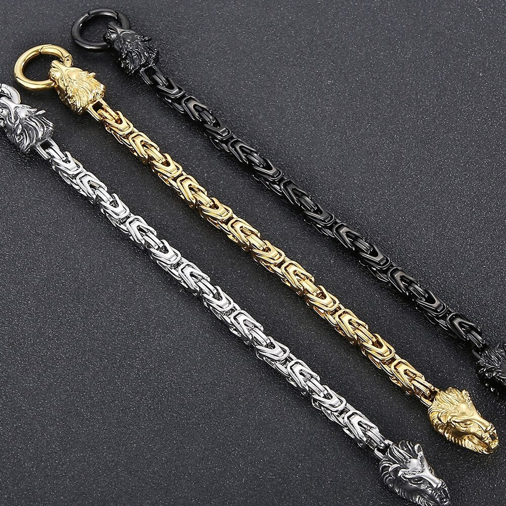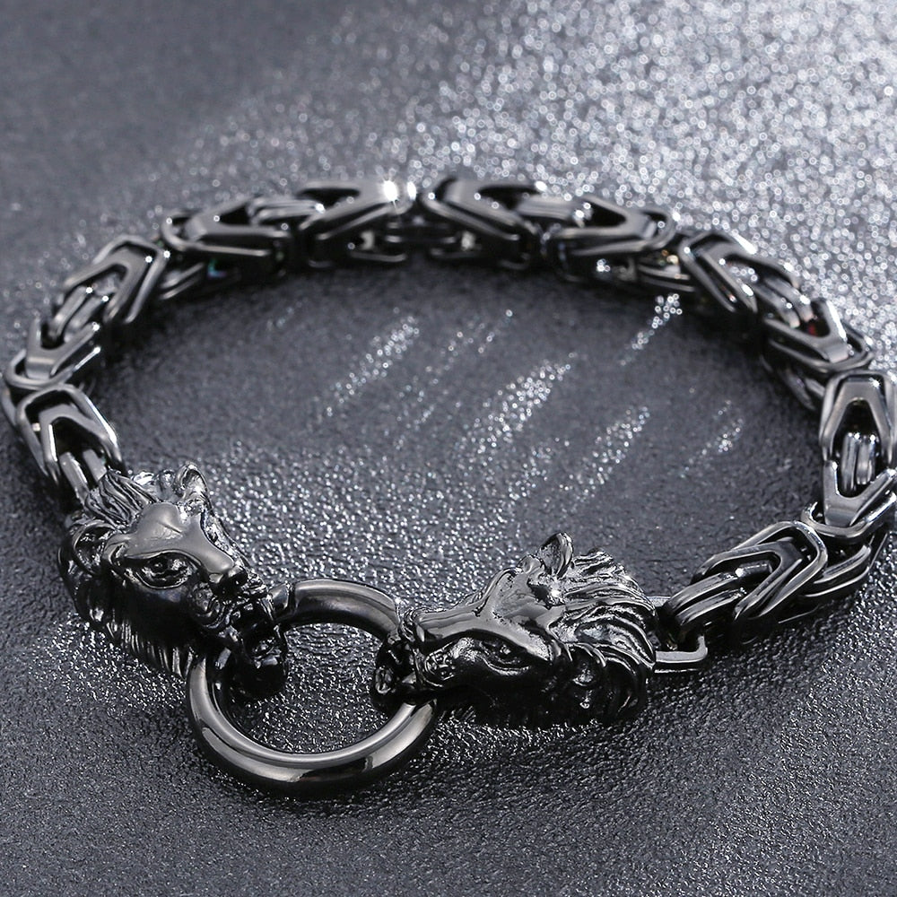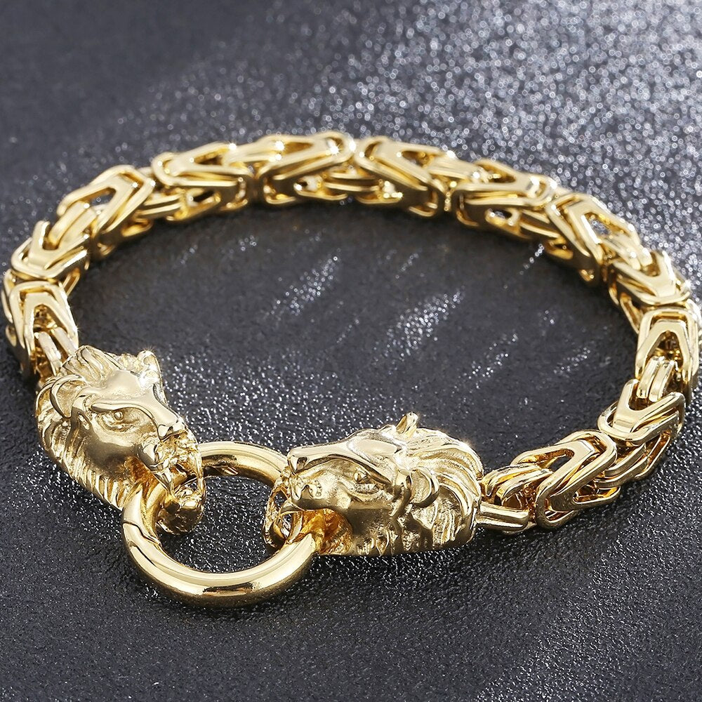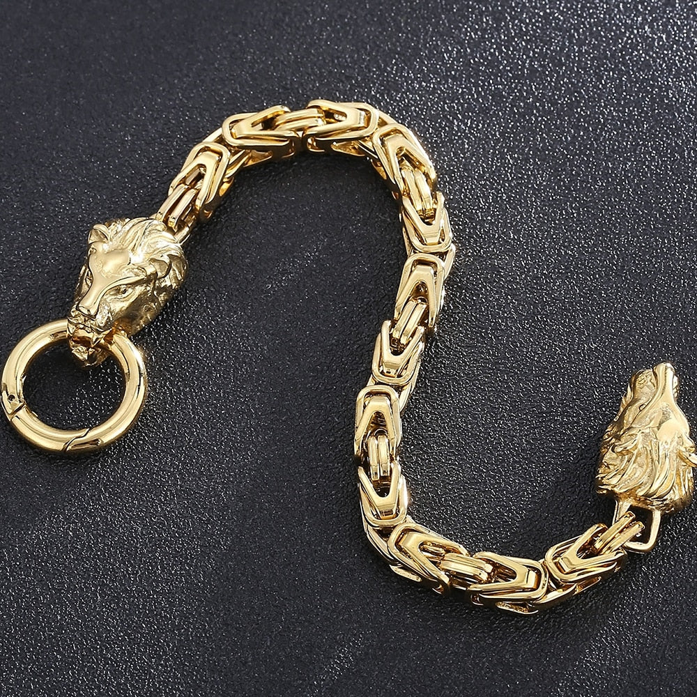 Pulsera de acero inoxidable con cabeza de león para hombre, joyería de fiesta, cadena de eslabones de 6 mm, con cierre de anilla de resorte, estilo punk.
