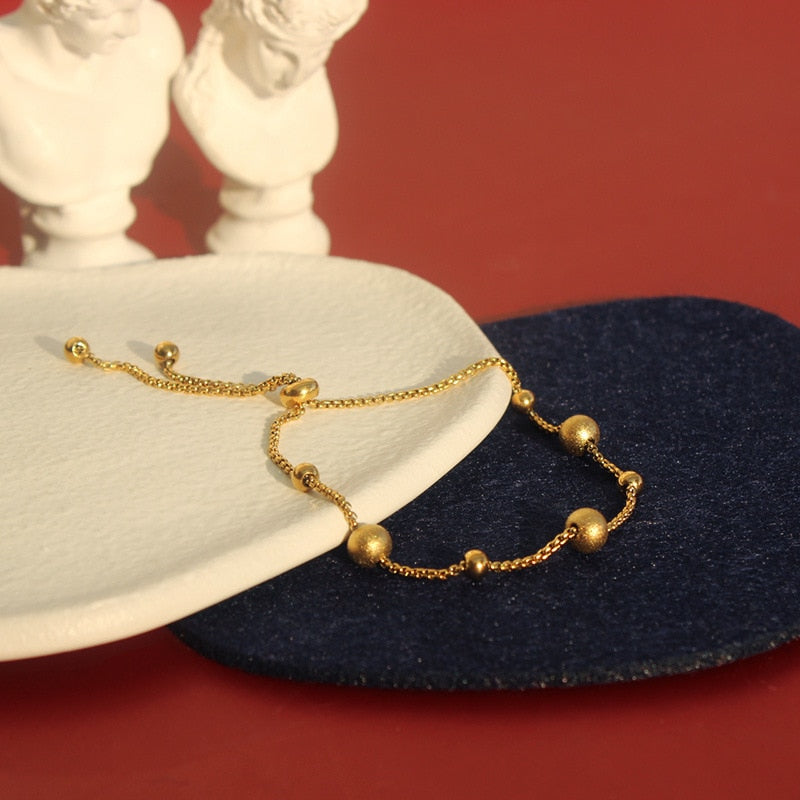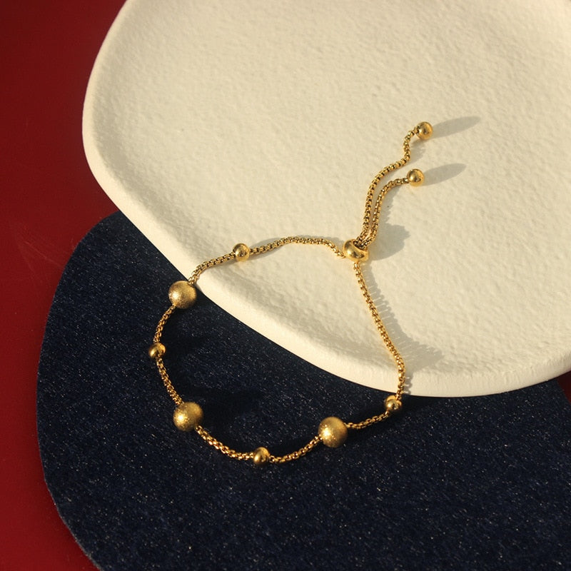 Joyería de oro 585: pulsera ajustable extraíble de acero inoxidable, pulsera de cuentas esmeriladas de moda, pulsera con dijes para pareja, accesorios de joyería, regalo