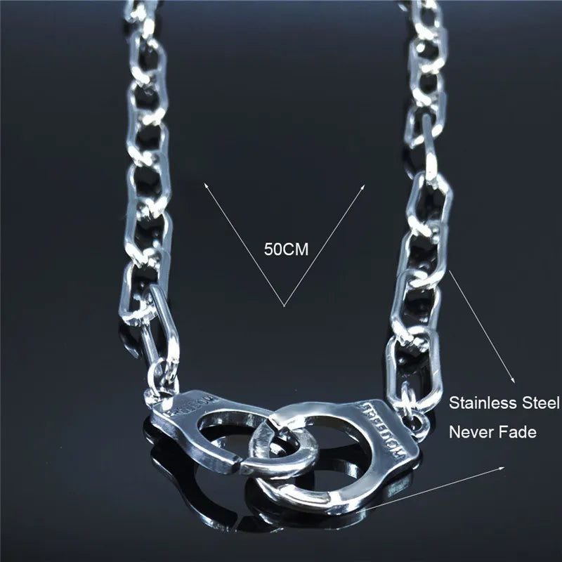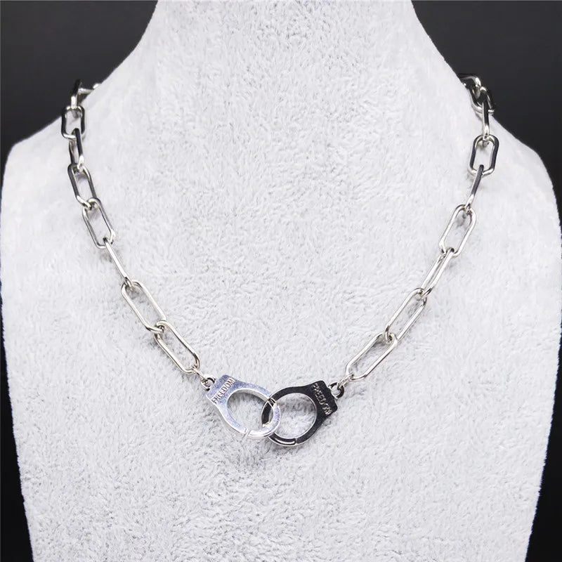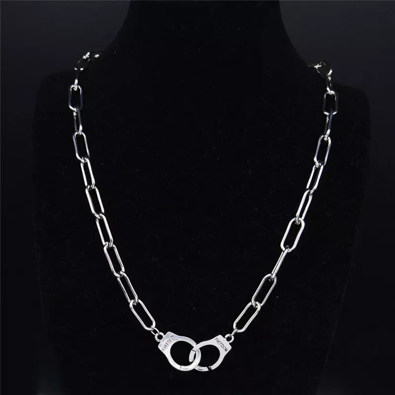 Gargantilla de acero inoxidable con esposas punk para mujer, color plata, colgantes