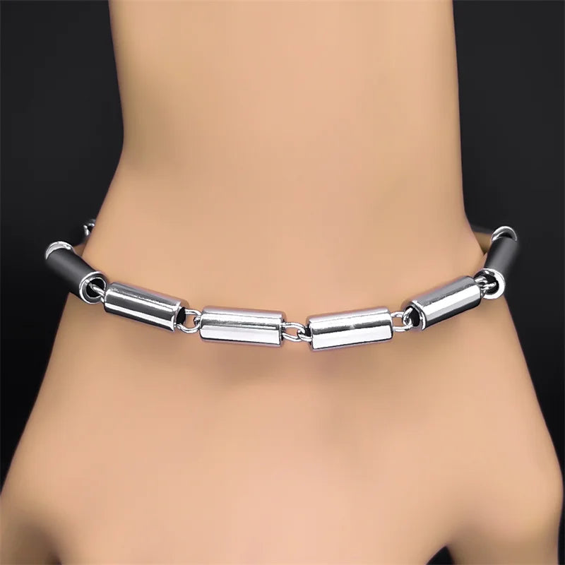 Pulsera de cadena de tubo redondo de acero inoxidable para hombres y mujeres