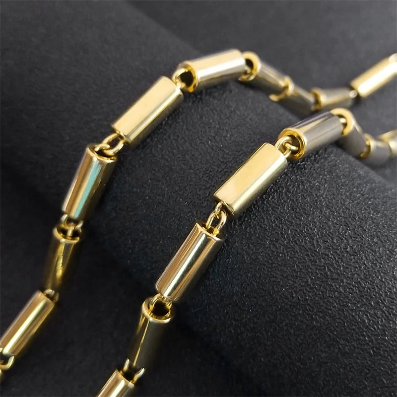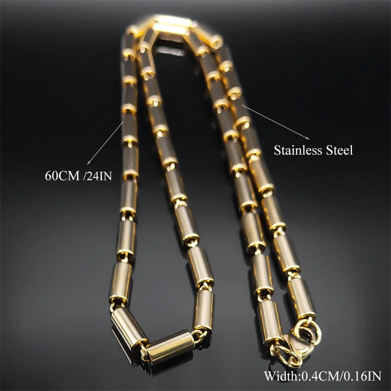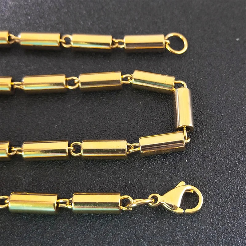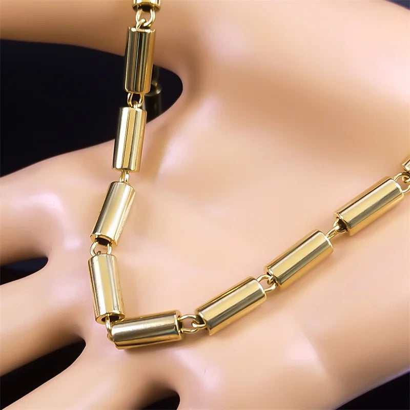 Collar y pulsera de cadena de tubo redondo de acero inoxidable para hombres y mujeres, color dorado y plateado, estilo punk, joyería masculina de moda.