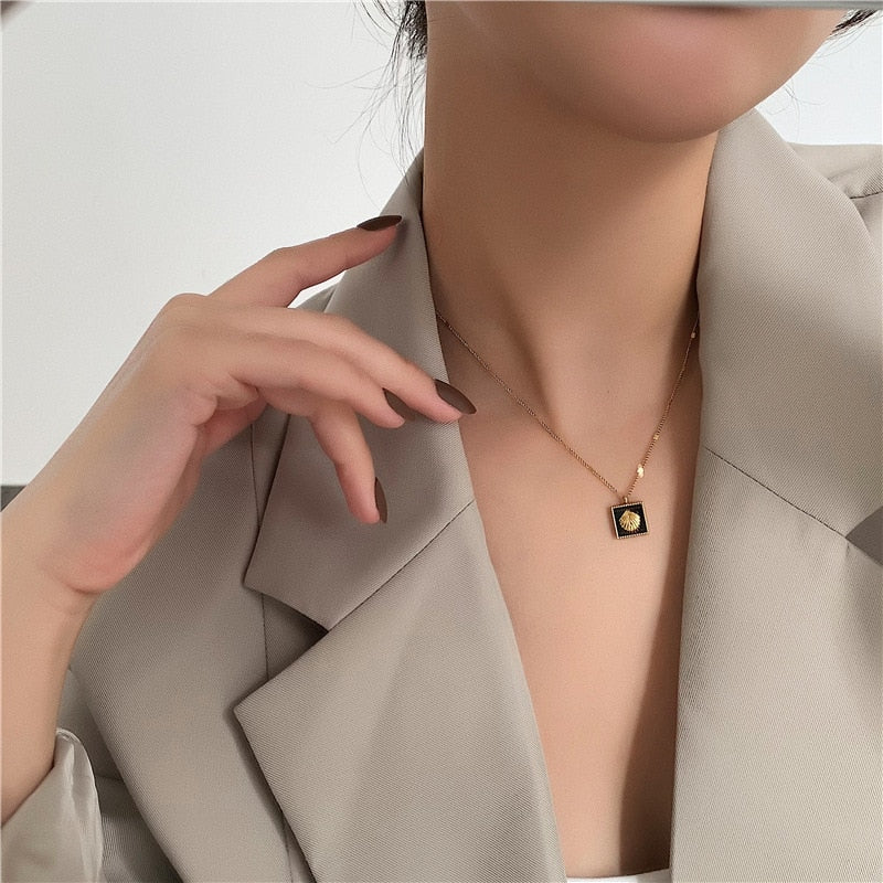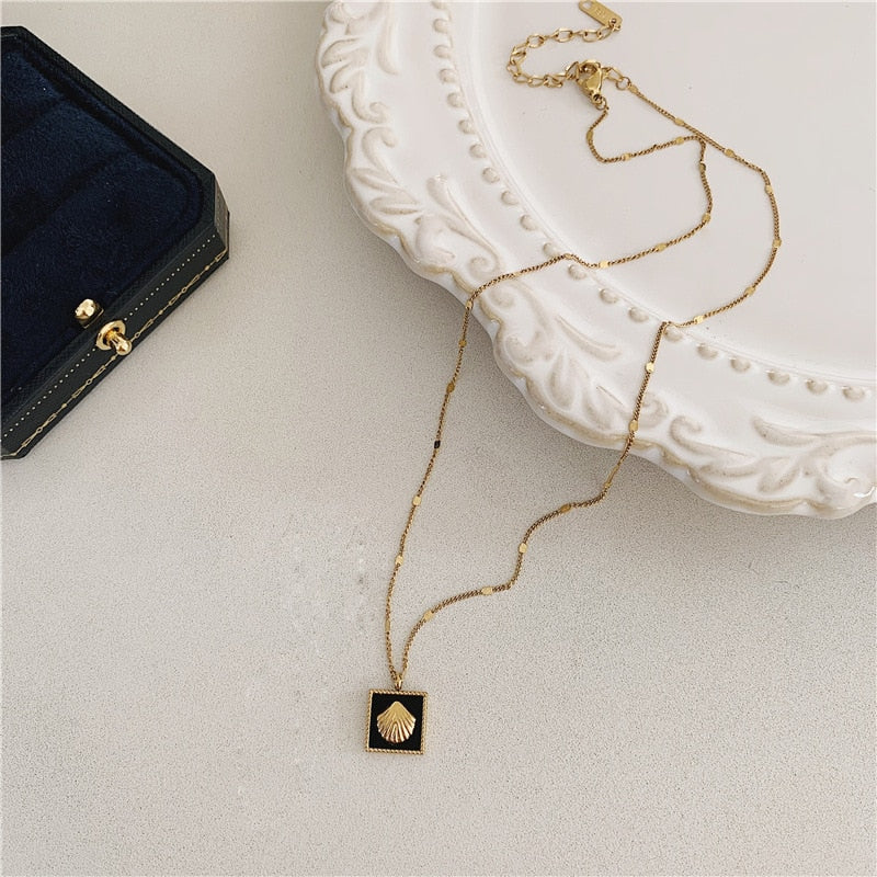 Collar de concha de acero inoxidable para mujer, collar cuadrado de metal de 18 quilates de alta calidad