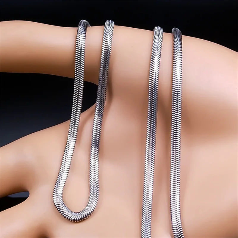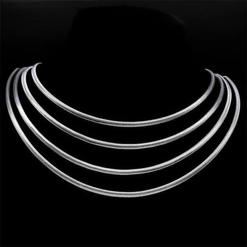 Collar de cadena de serpiente de acero inoxidable para hombres y mujeres, gargantillas de estilo hip hop para fiestas, cadena de eslabones de color plateado, collares de clavícula, joyería de regalo.