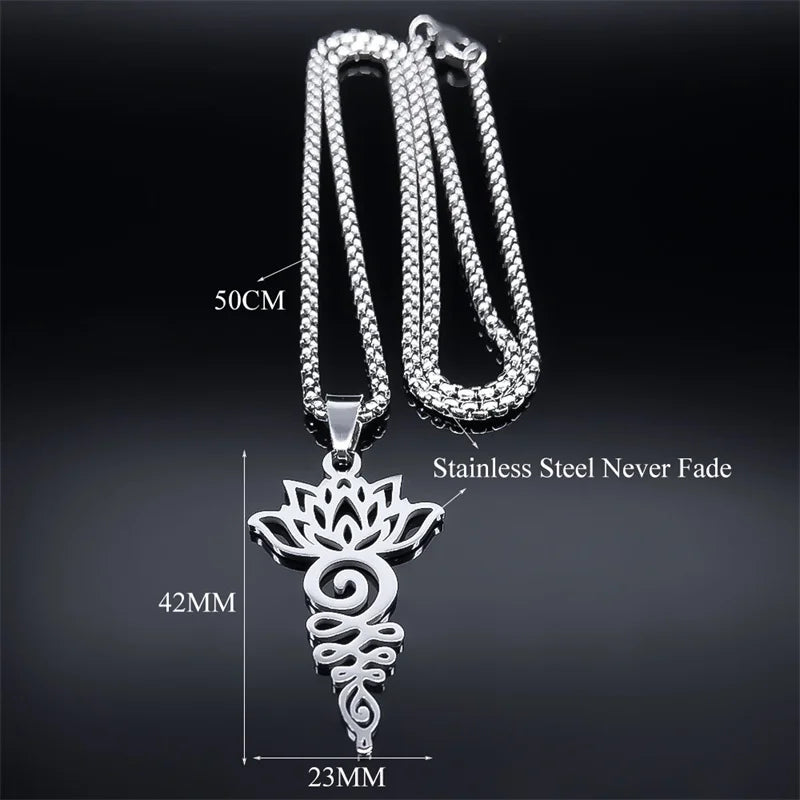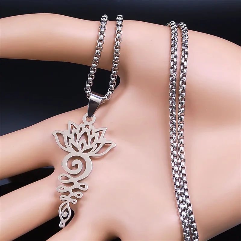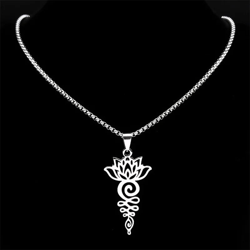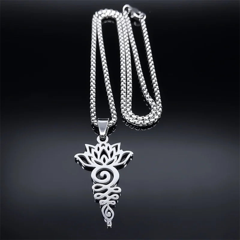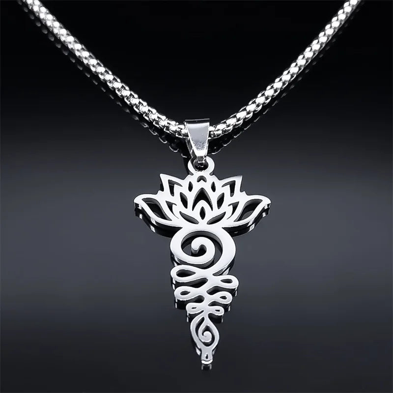 Collar de acero inoxidable con chakras de loto y yoga para mujeres y hombres.