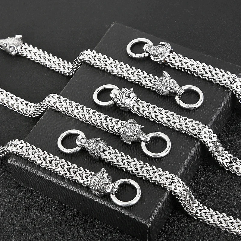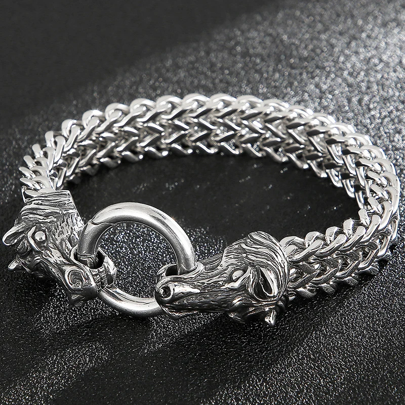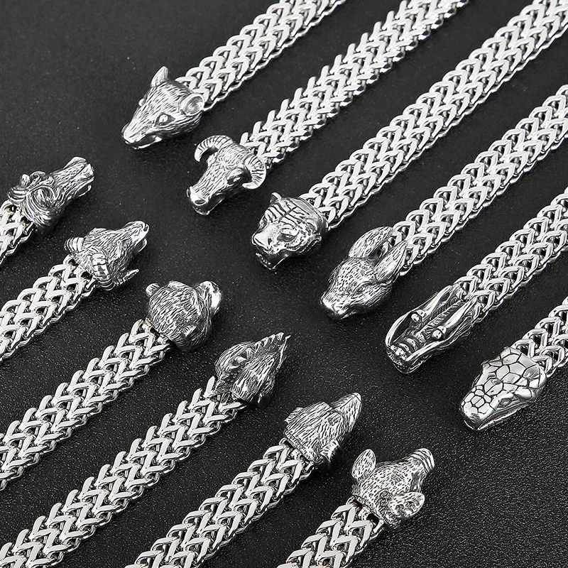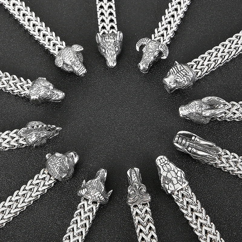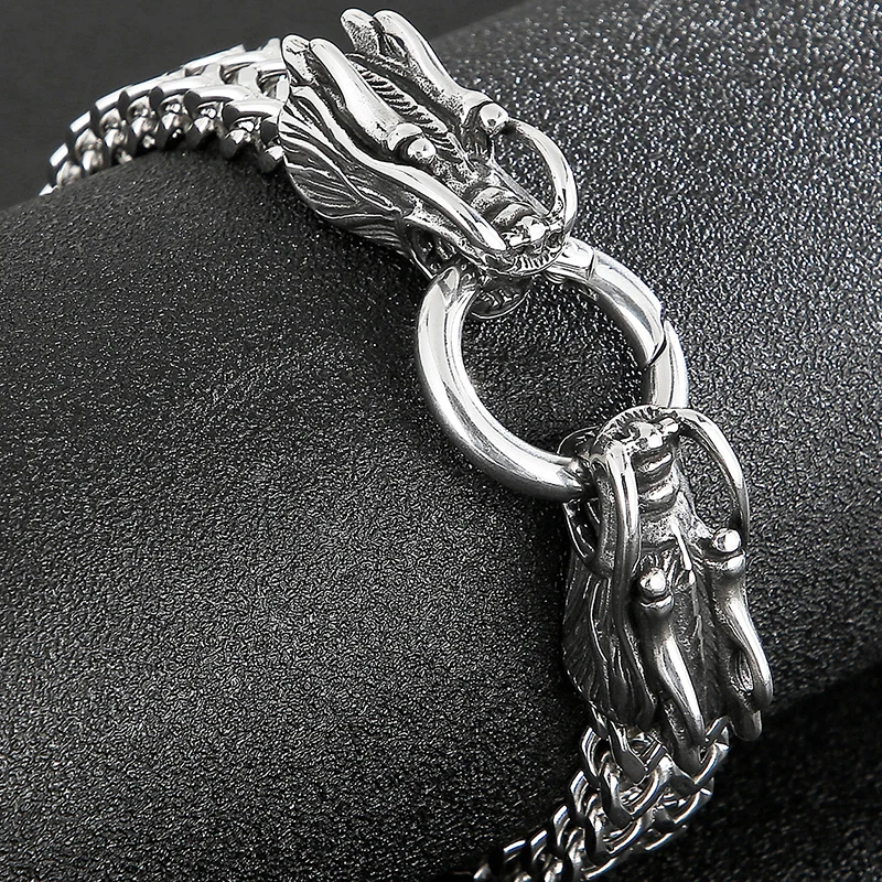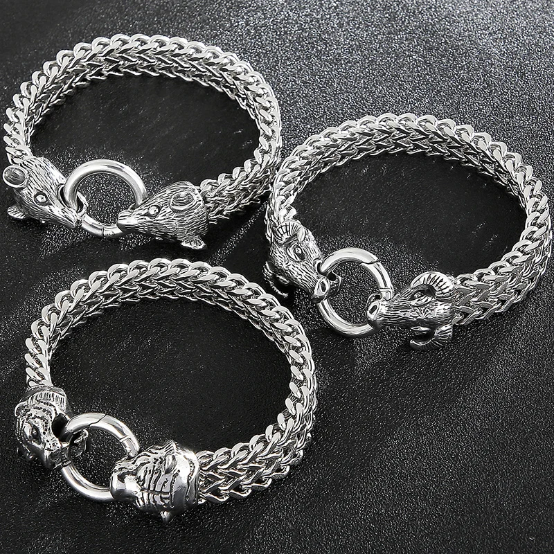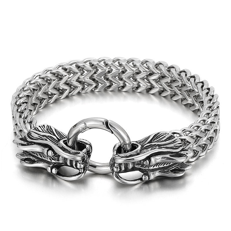Pulsera de acero inoxidable con el zodiaco para hombre, cadena de eslabones Franco de 12 mm, con diseño de dragón y tigre, con bolsa de regalo.
