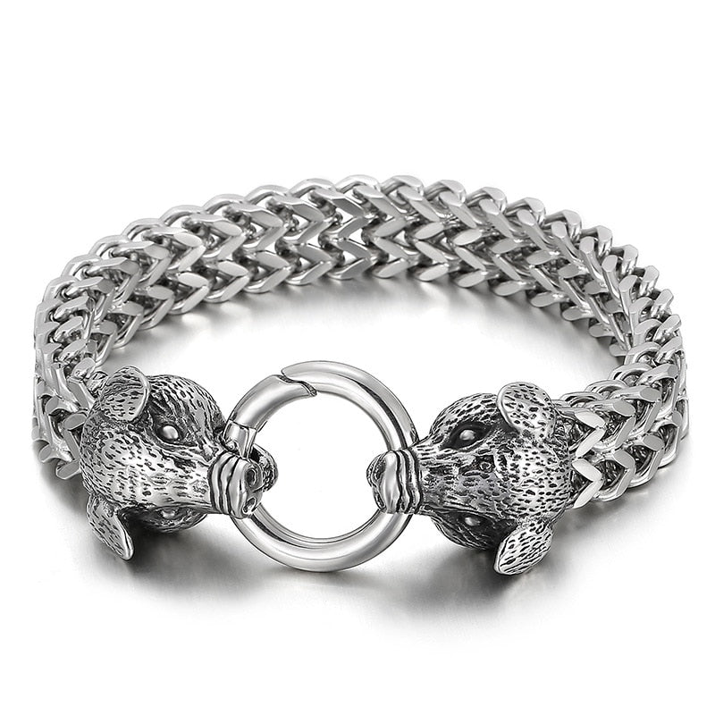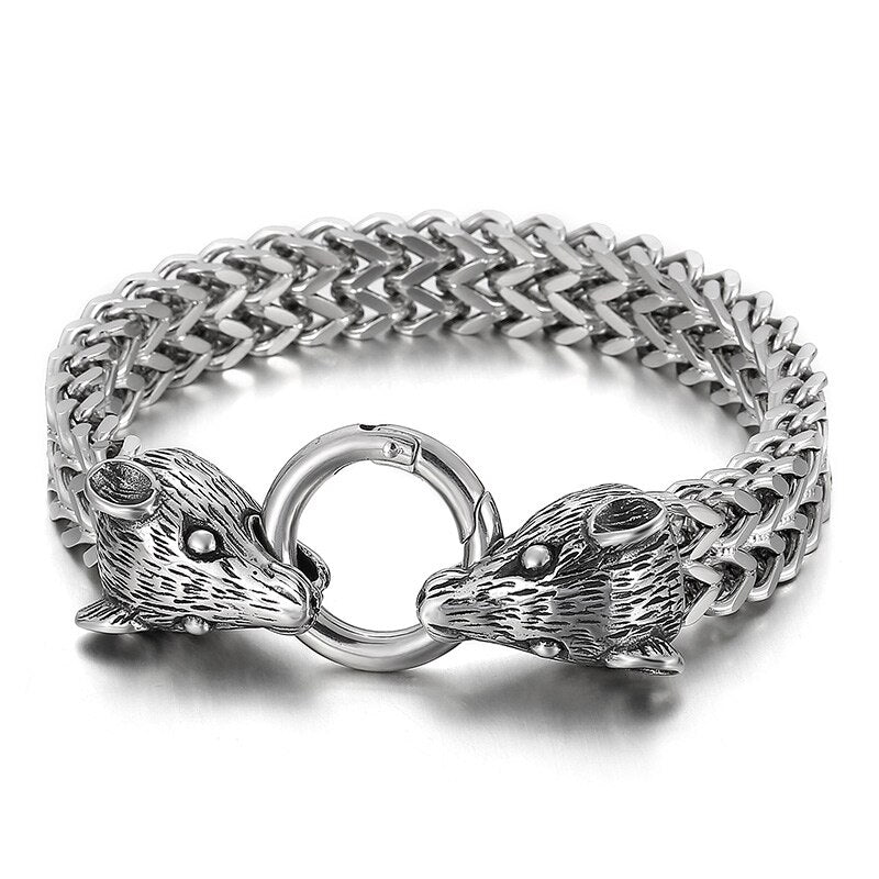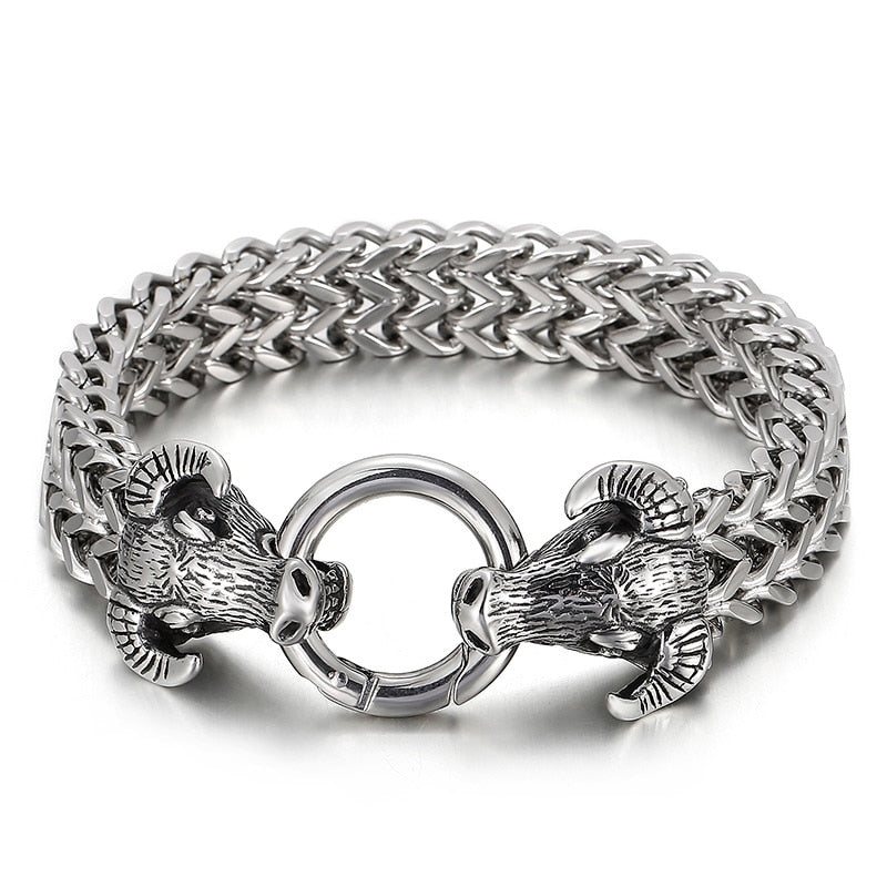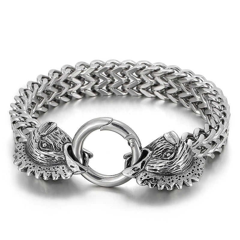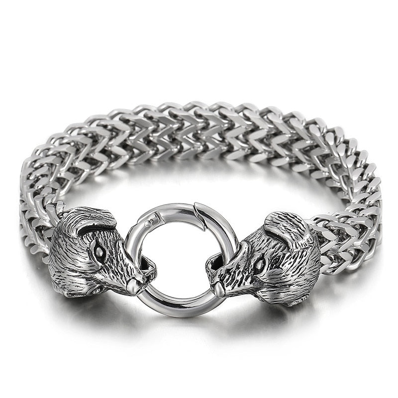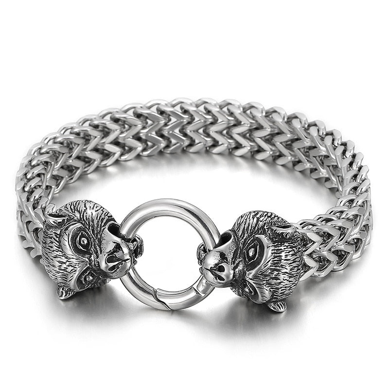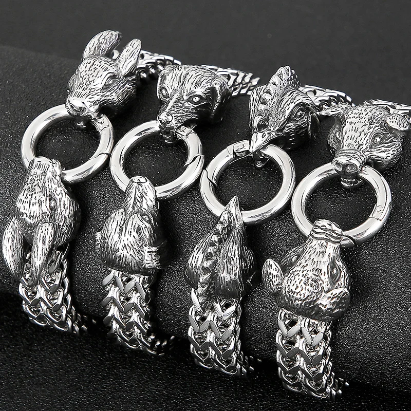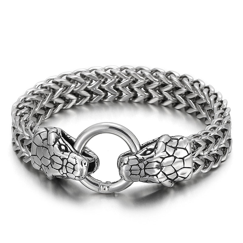 Pulsera de acero inoxidable con el zodiaco para hombre, cadena de eslabones Franco de 12 mm, con diseño de dragón y tigre, con bolsa de regalo.
