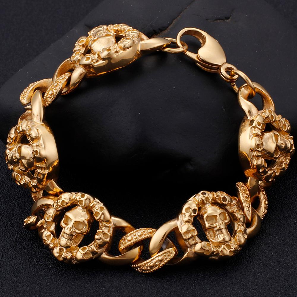 Pulsera Steampunk para hombre, estilo gótico, con calavera, accesorios de joyería para hombre, pulsera de acero inoxidable para Halloween.