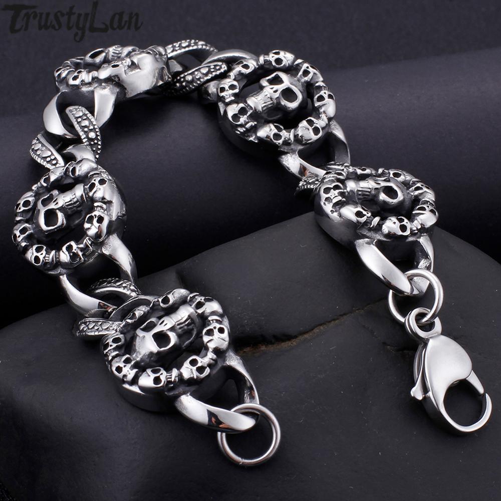 Pulsera de calavera gótica para hombre: joyería de motociclista