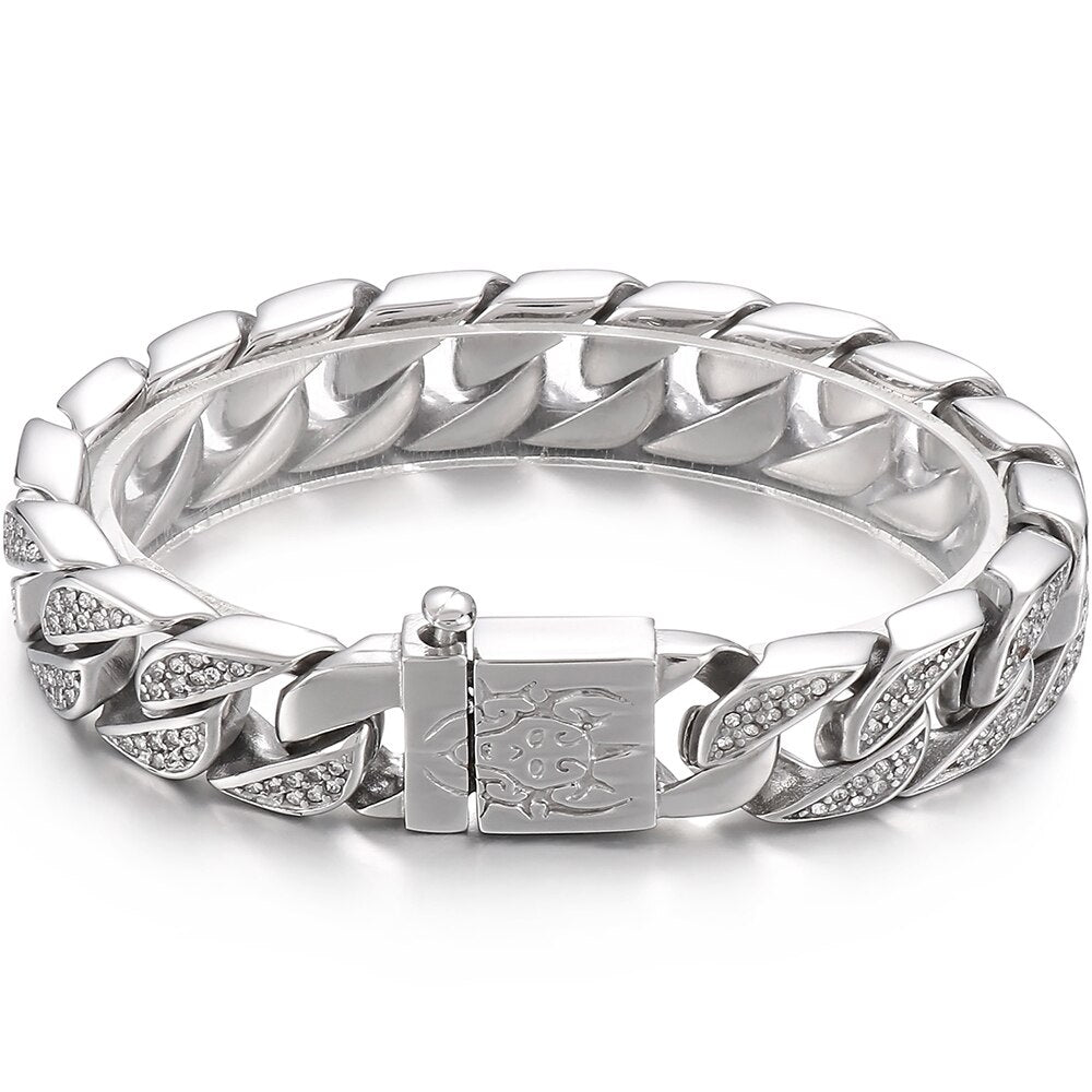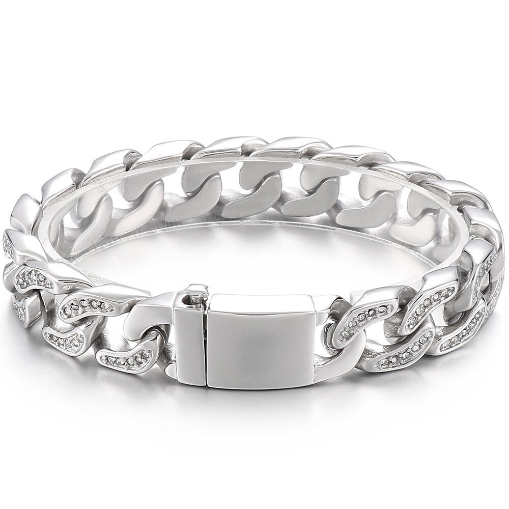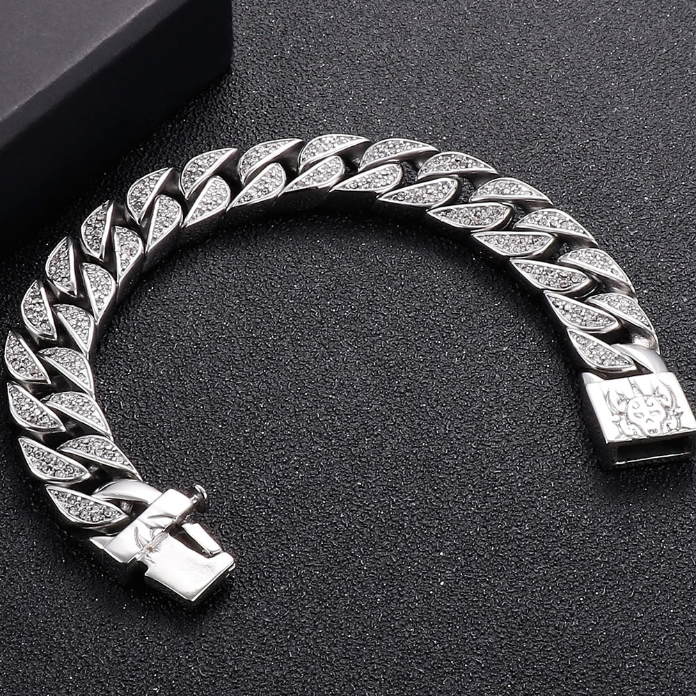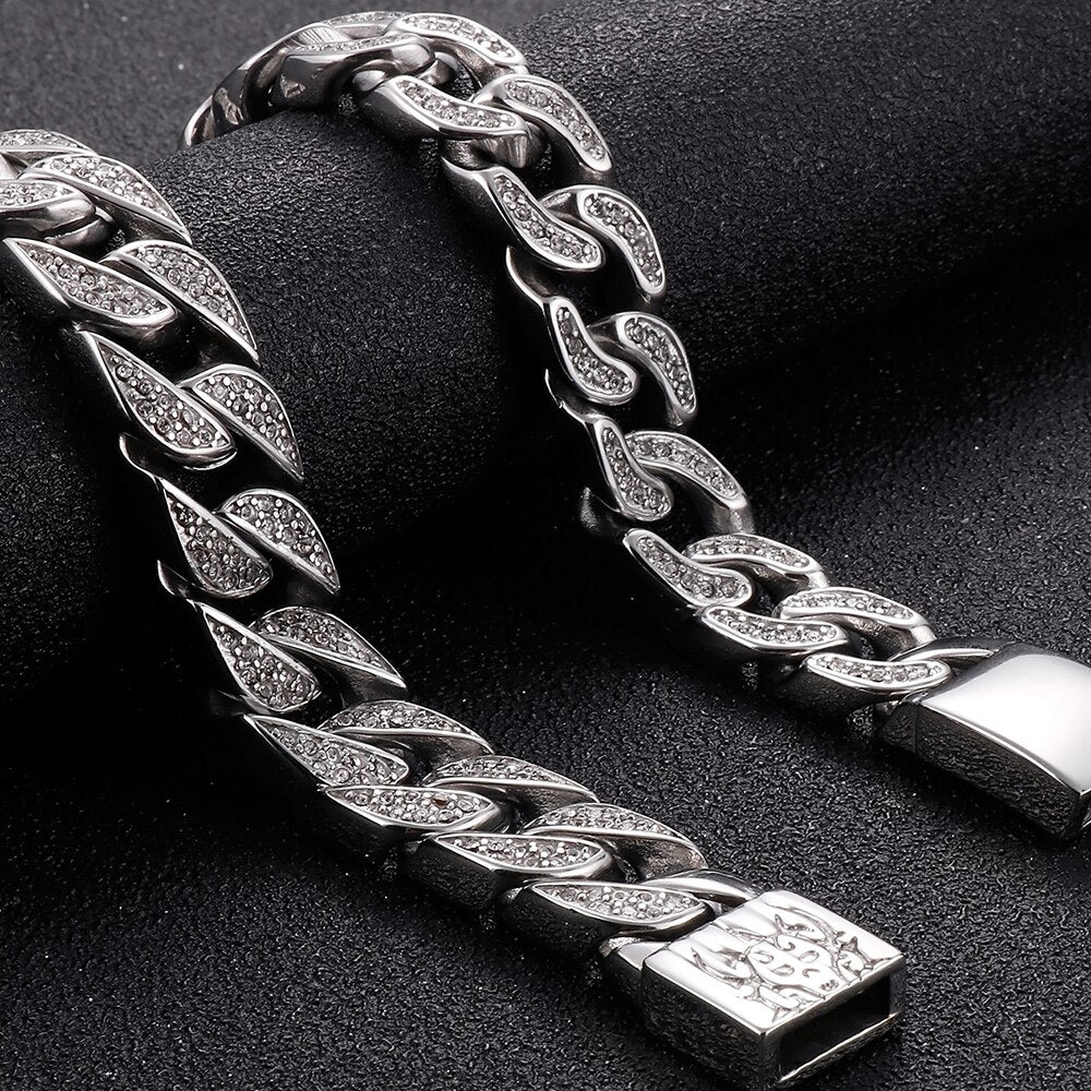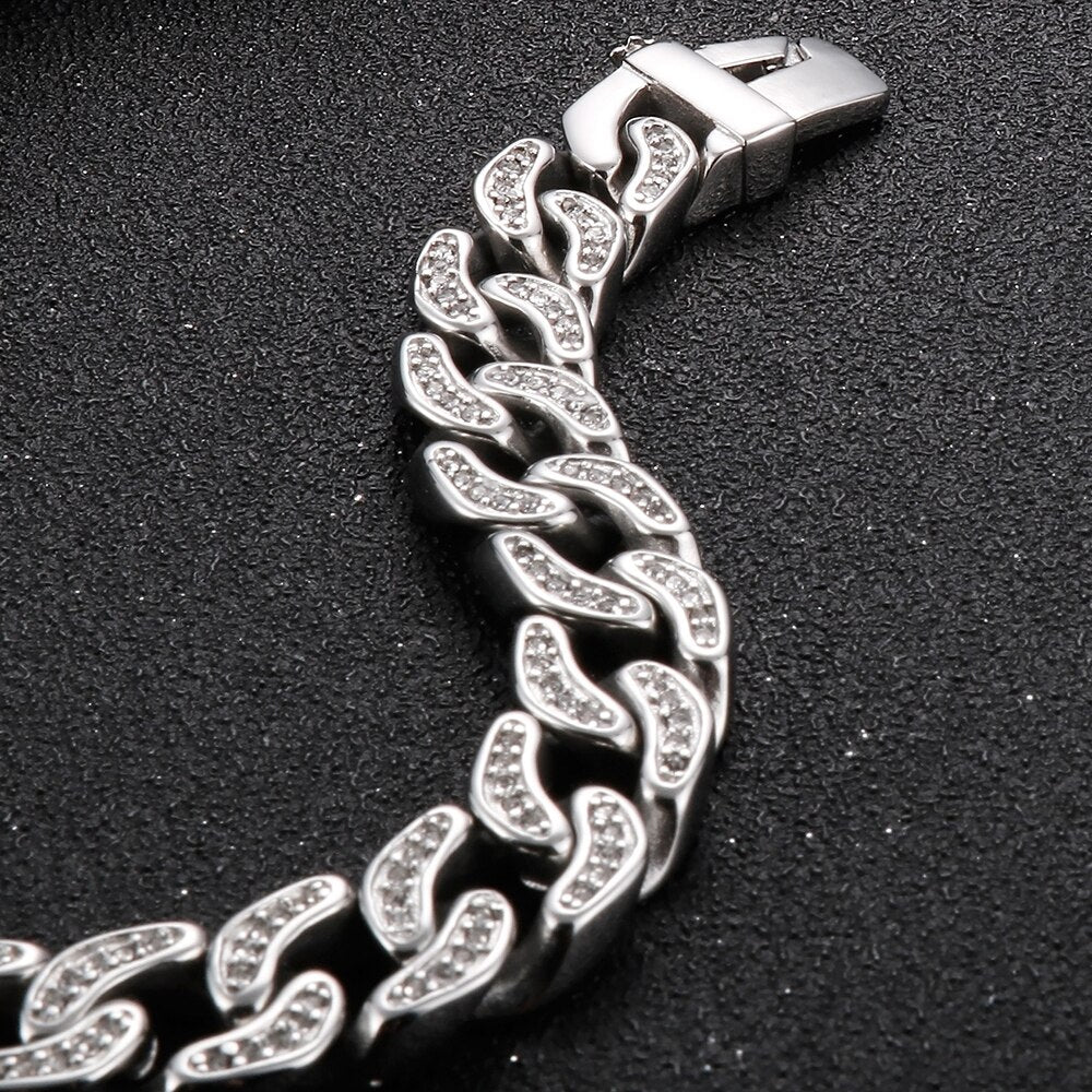 Pulsera de cadena de eslabones cubanos con circonitas cúbicas estilo steampunk para hombre