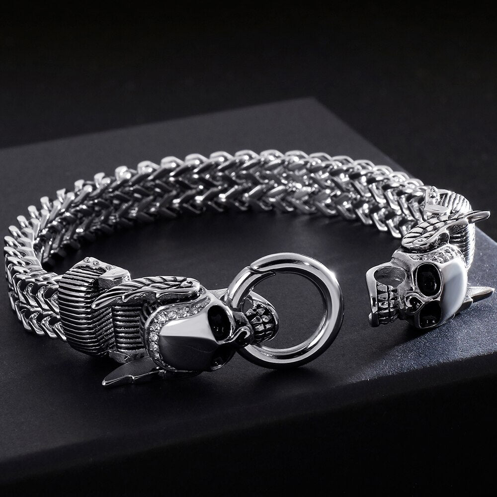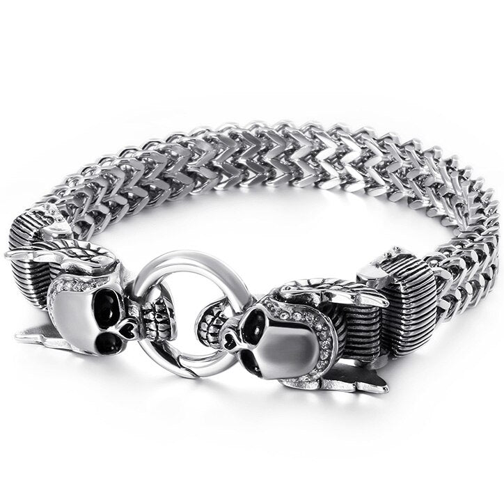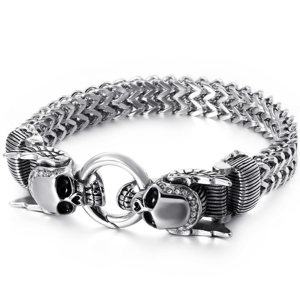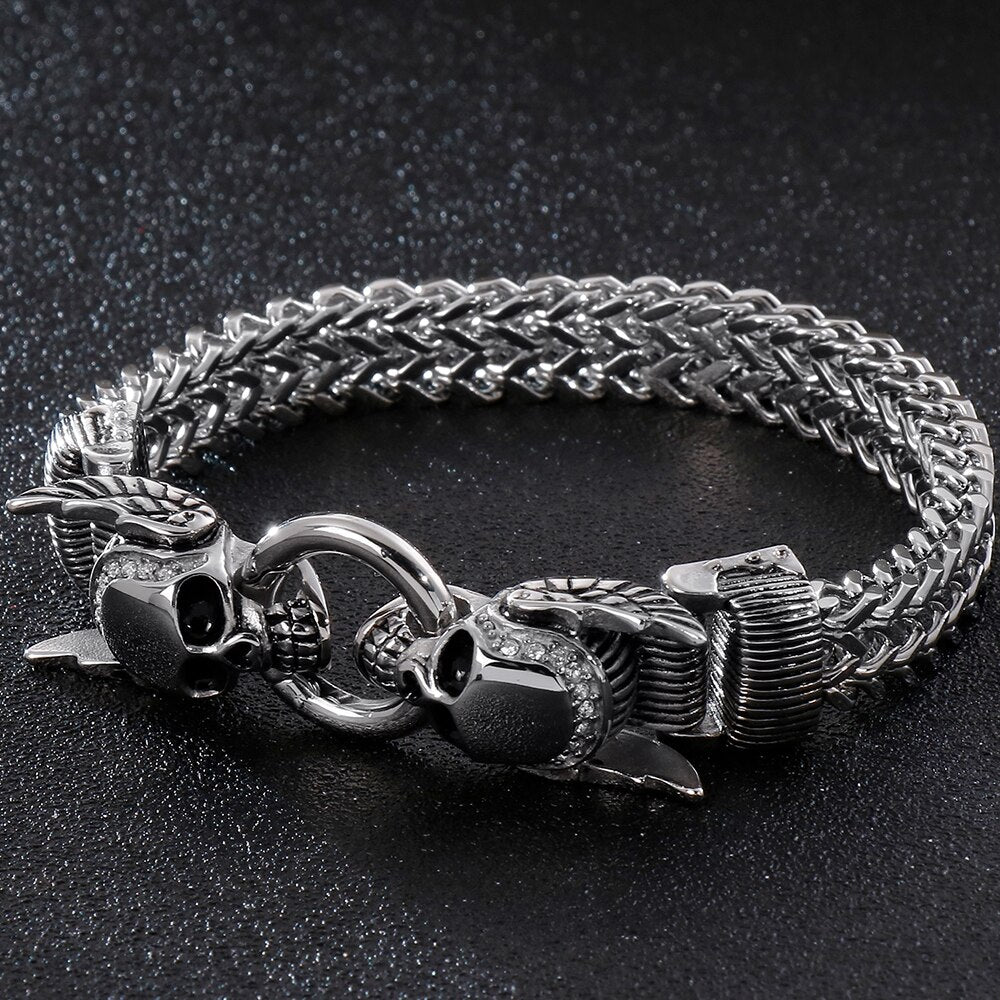 Pulsera de calavera steampunk para hombre con asas de acero inoxidable, accesorios de joyería rockeros para Halloween.