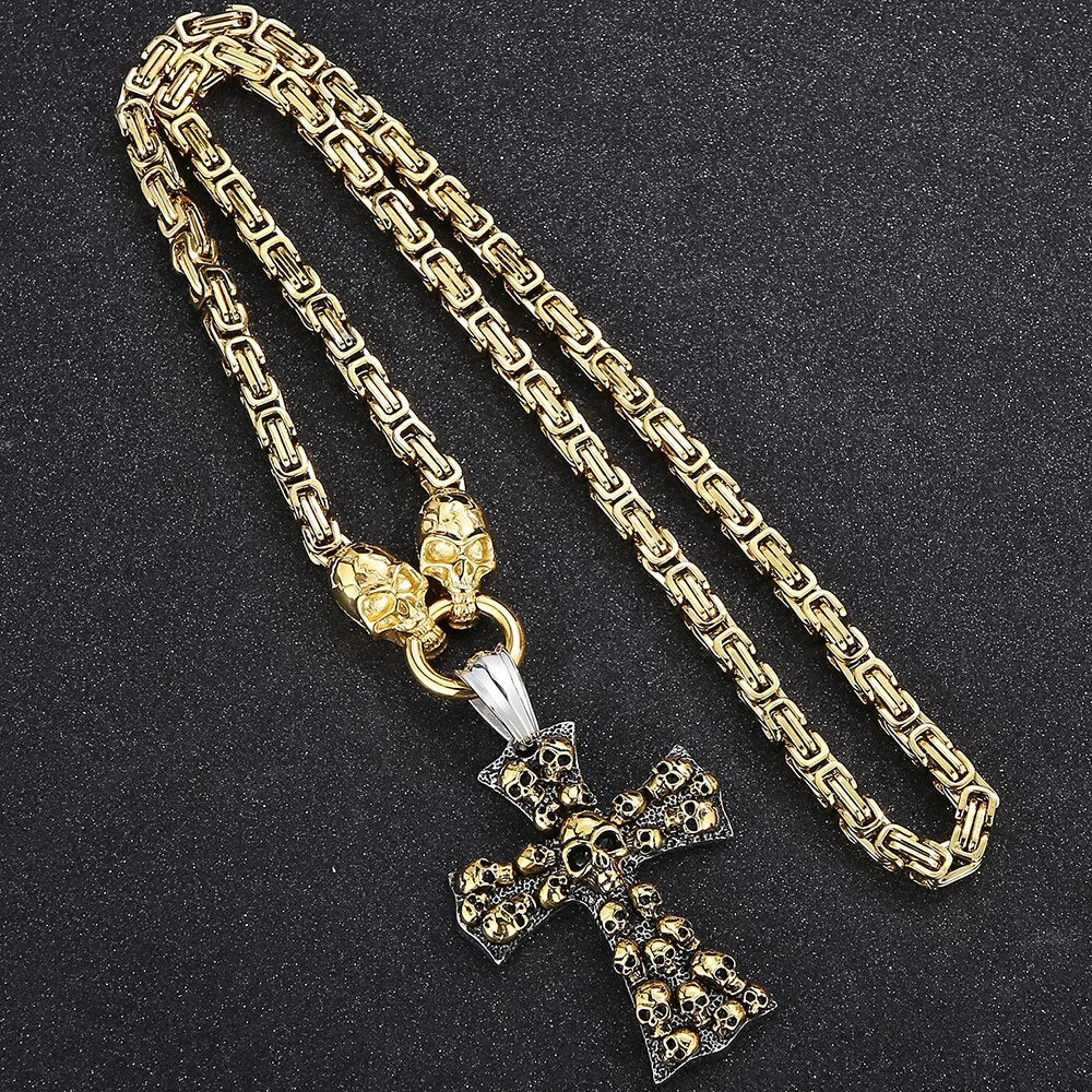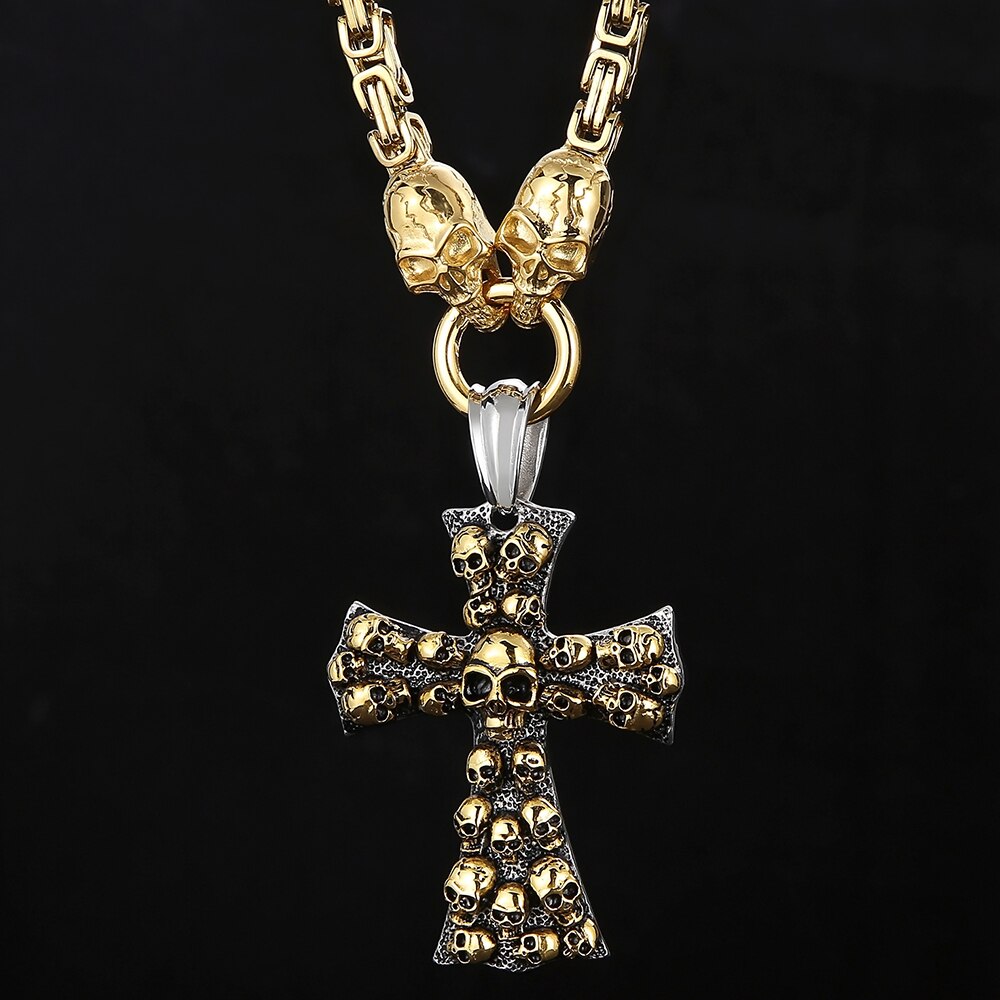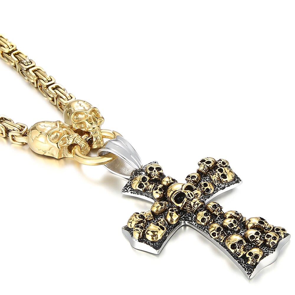 Collar con colgante de calavera steampunk para hombre, de acero inoxidable chapado en oro, estilo hip hop, para motociclistas, joyería de Halloween, con cadena para el cuello.