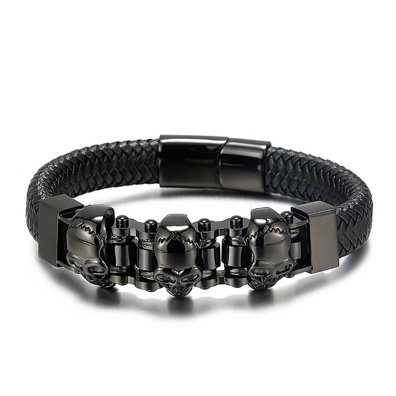 Pulsera de cuero para hombre: Pulseras de calavera para hombre
