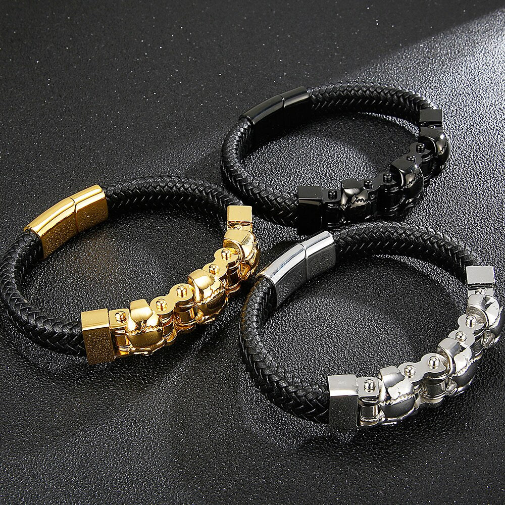 Pulsera de acero inoxidable con diseño de calavera Steampunk para hombre, de cuero, 3 colores a elegir, regalo de cumpleaños para padre y novio.