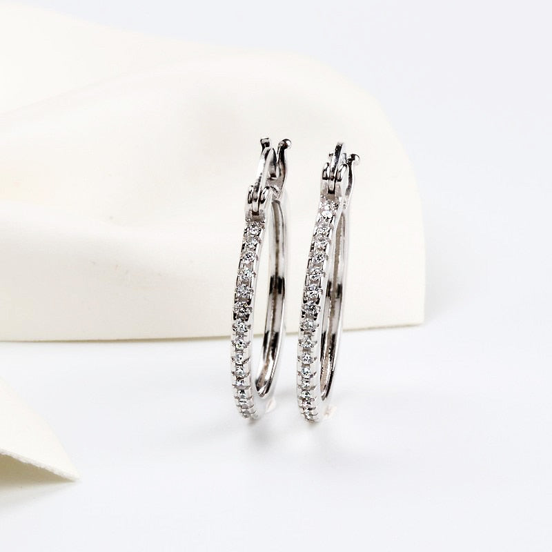 Pendientes de clip de plata de ley para mujer con circonitas cúbicas hipérbole y círculo grande