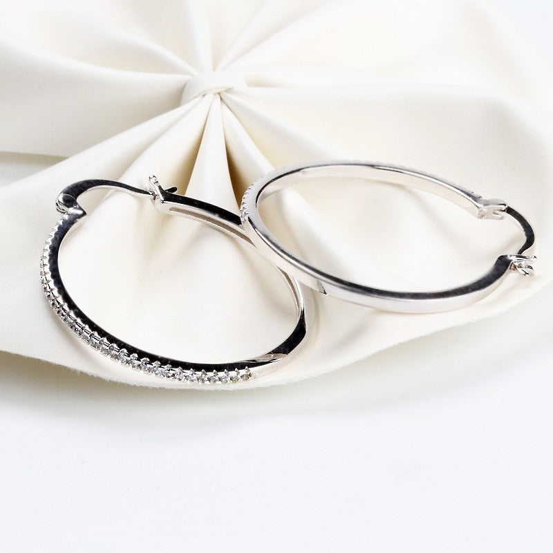 Pendientes de moda: pendientes de clip de plata esterlina para mujer con circonitas cúbicas hipérbole y círculos grandes, accesorios de boda.