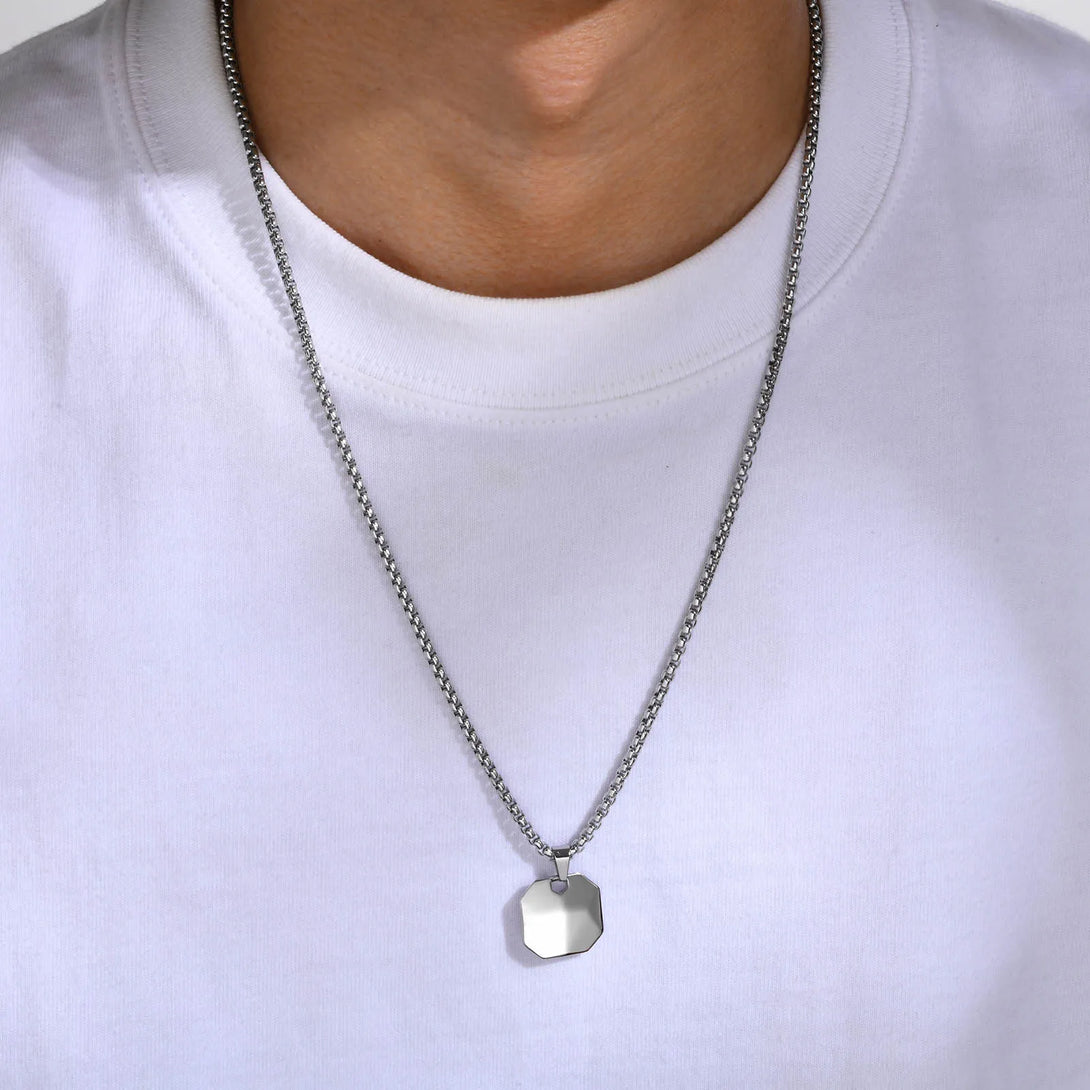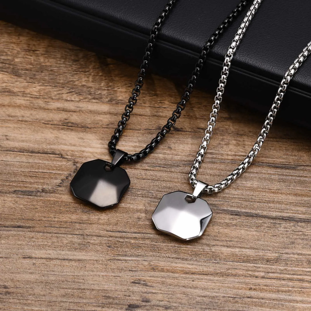 Collares geométricos elegantes para hombre, de acero inoxidable resistente al agua, con colgante cuadrado 3D y cadena de eslabones, joyería minimalista para hombre.
