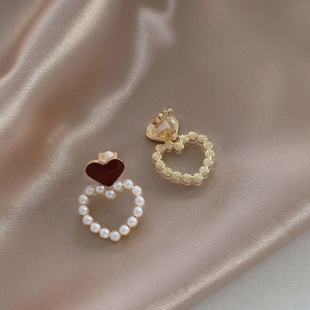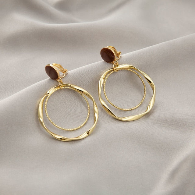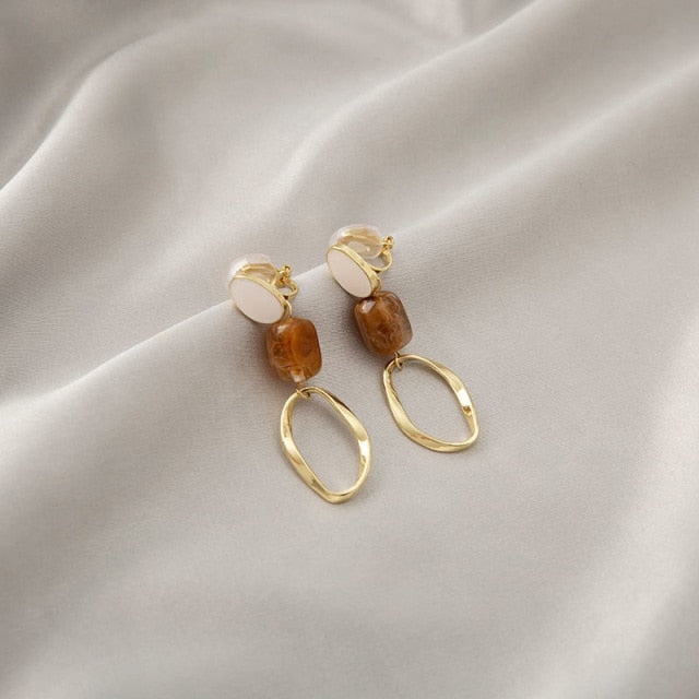 Pendientes de moda: elegantes y lujosos pendientes de clip coreanos vintage para mujeres elegantes, sencillos y con clip para las orejas.
