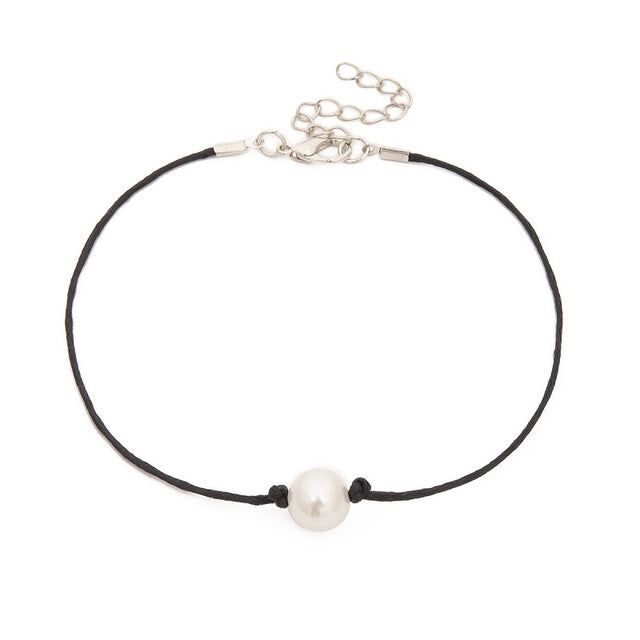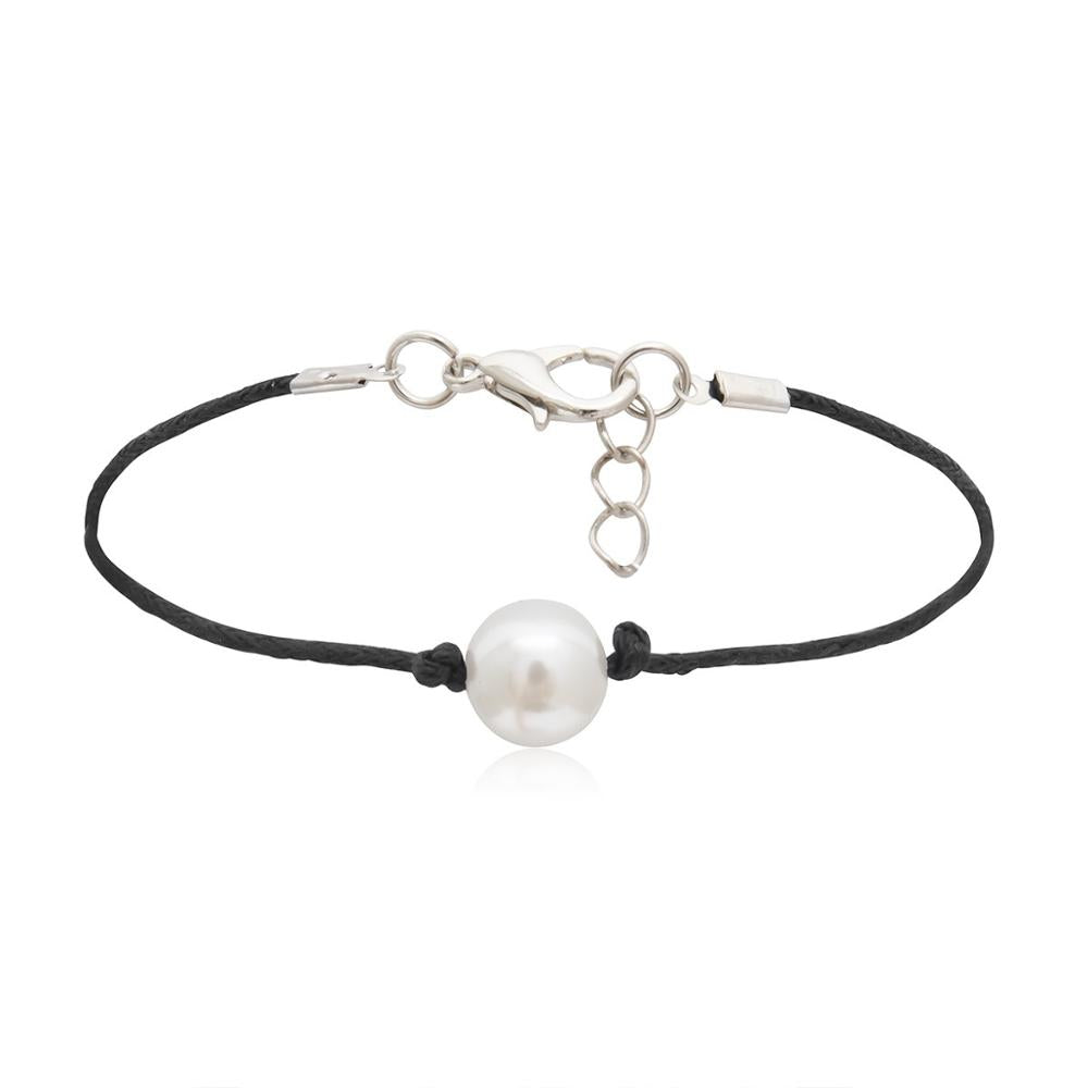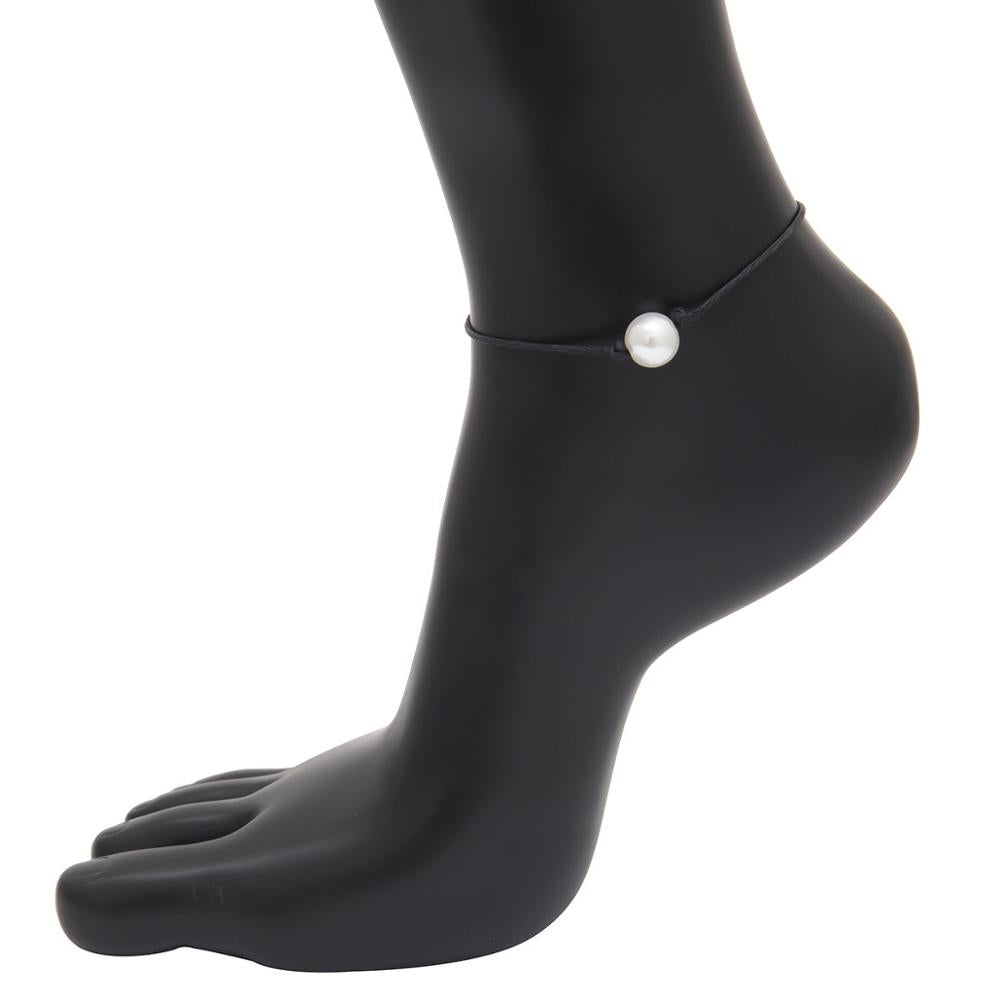 Tobilleras de cuero con perlas y cuerda para playa, ajustables en negro, para mujer, joyería bohemia
