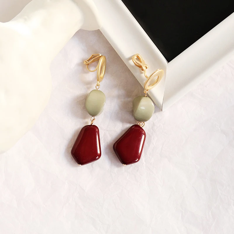 Pendientes de moda - Tendencia de verano 2022, grandes pendientes de clip de acrílico irregulares hechos a mano, estilo bohemio, para mujer, con encanto, sin perforaciones, joyería con clip para las orejas