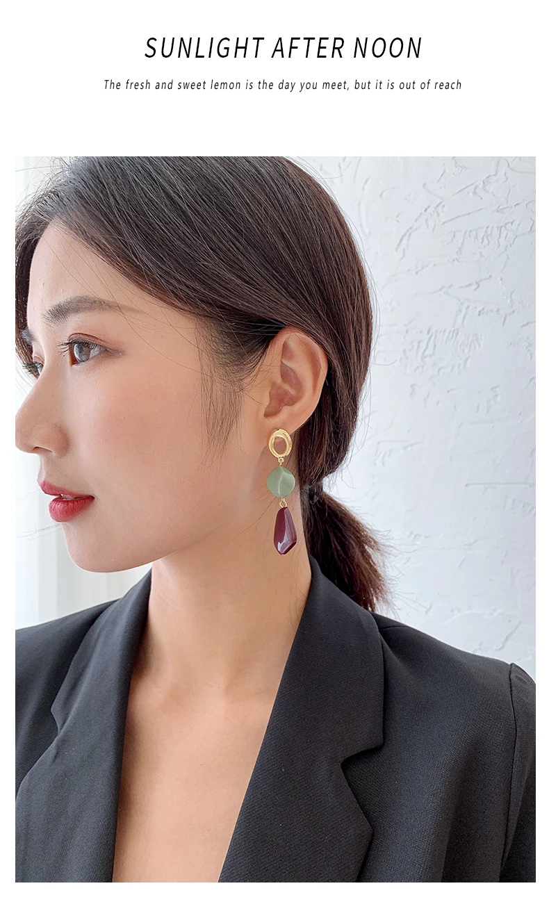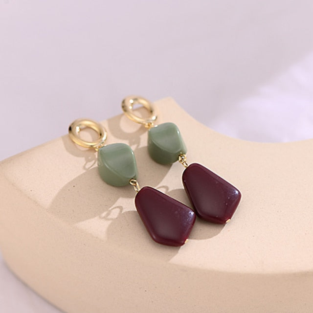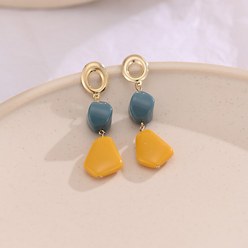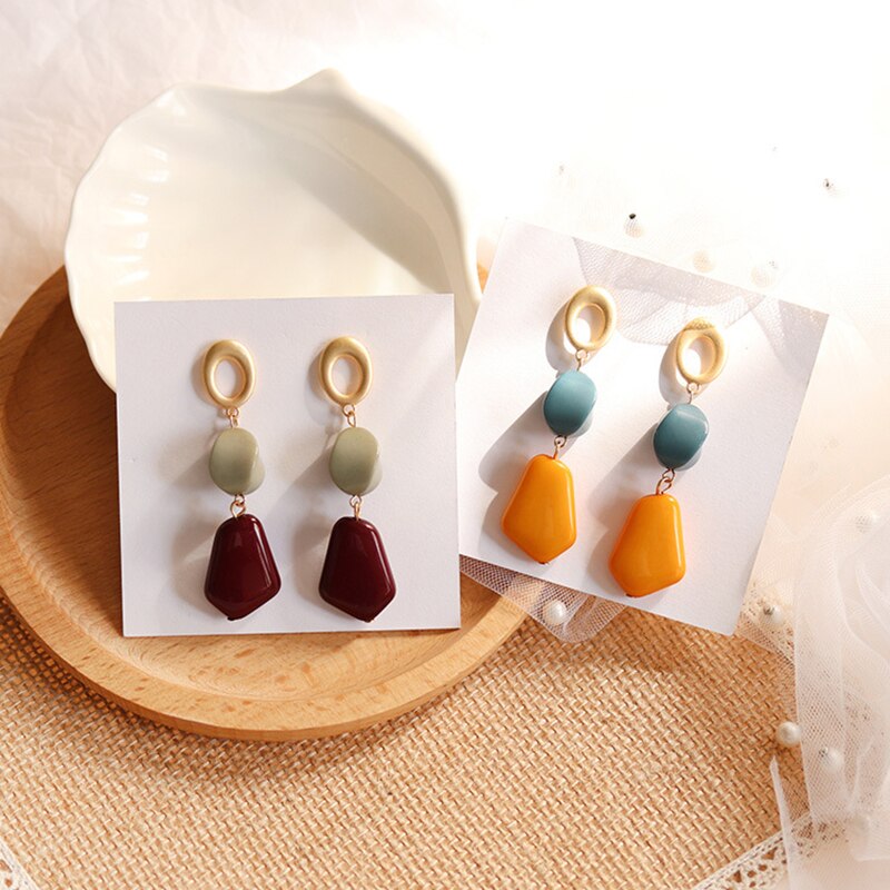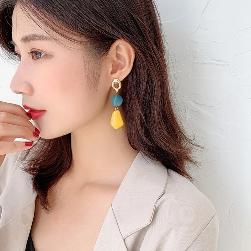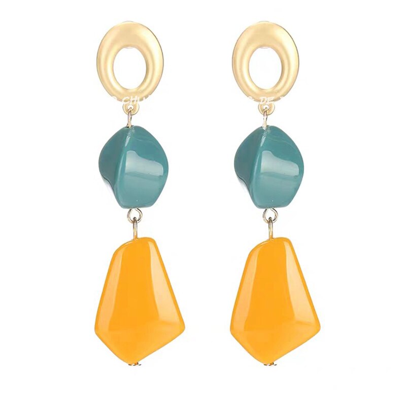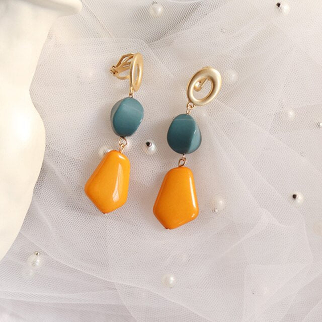 Pendientes de clip con estilo bohemio, de acrílico, irregulares y grandes, hechos a mano, de tendencia veraniega